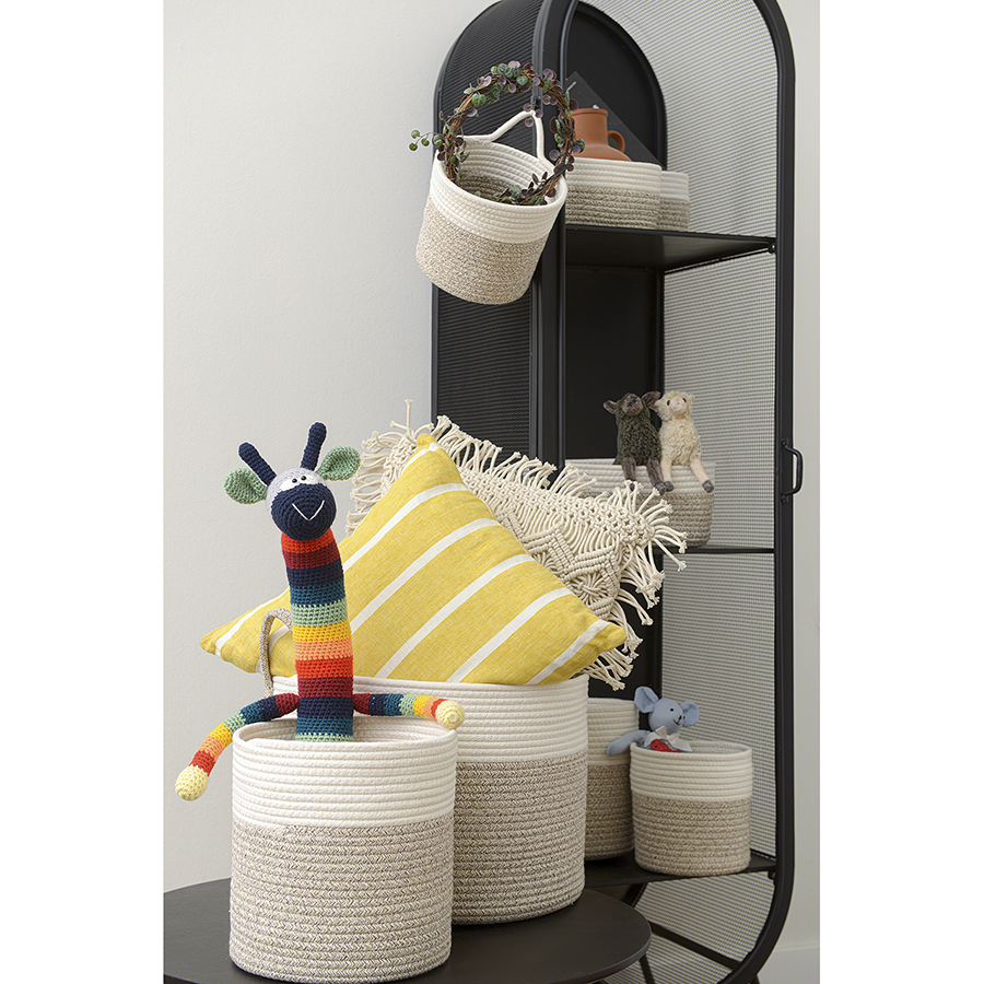"Плетеное кашпо Gerd – прекрасный вариант для поклонников стилей эко, кантри, сканди и прованс. Декоративный горшок для комнатных растений из хлопковой веревки смотрится оригинально, благодаря чему может стать необычным акцентом в интерьере. Небольшие размеры позволяют размещать кашпо в любом удобном месте. Материал изготовления легко чистится от загрязнений, устойчив к износу.