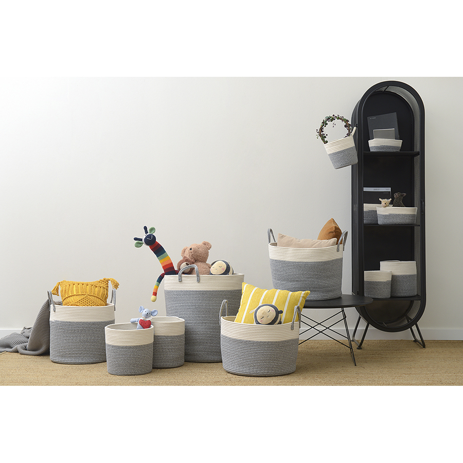 Материал: хлопковый шпагат мягкого плетения. Диаметр: 25 см. Высота: 24 см. Цвет: кремовый/светло-серый.