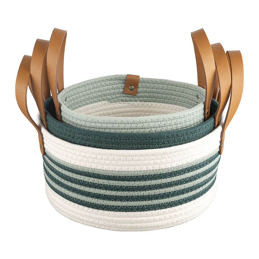 "Корзина Helly – прекрасный вариант для хранения различных предметов. Благодаря стильному дизайну такой контейнер отлично вписывается в современный интерьер гостиной, спальни или прихожей. Изделие выполнено из хлопковой нити с добавлением полиэстера, что гарантирует ему прочность, устойчивость к истиранию и привлекательный вид на протяжении всего срока службы. Изюминку корзине придают плетеный корпус и ручки из полиуретана, которые также обеспечивают удобную переноску.