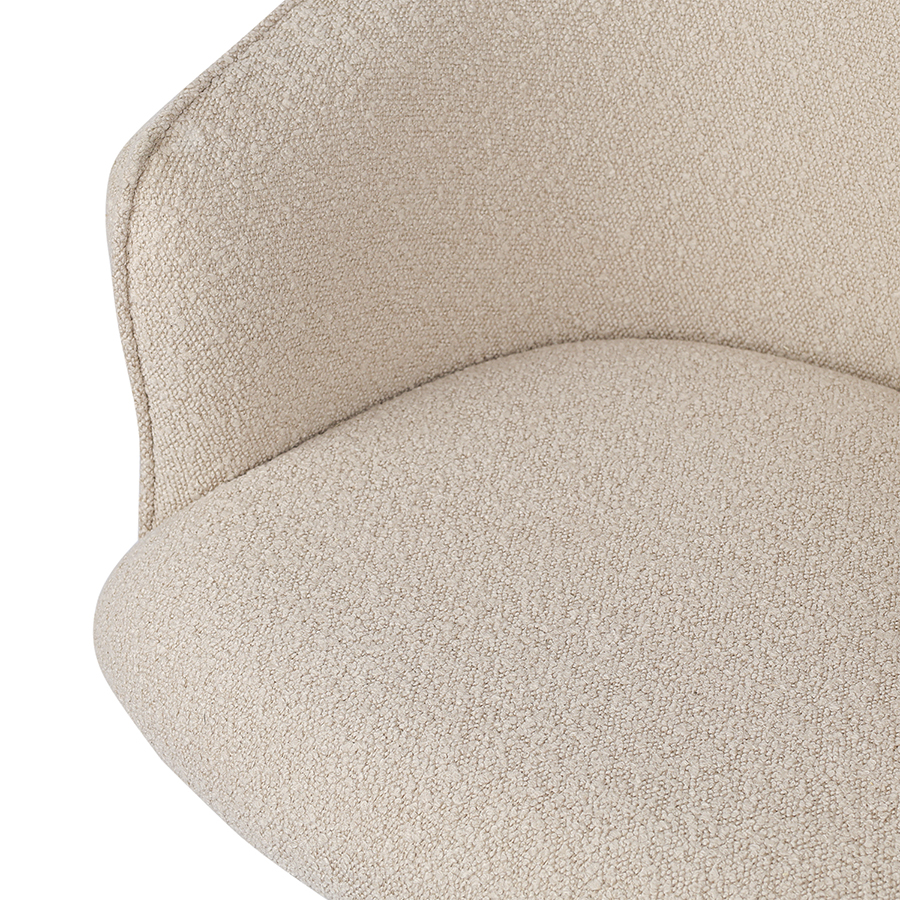 - Обивка из буклированной ткани придает креслу уютный и в то же время элегантный вид, характеризуется высокой устойчивостью к истиранию и износу.