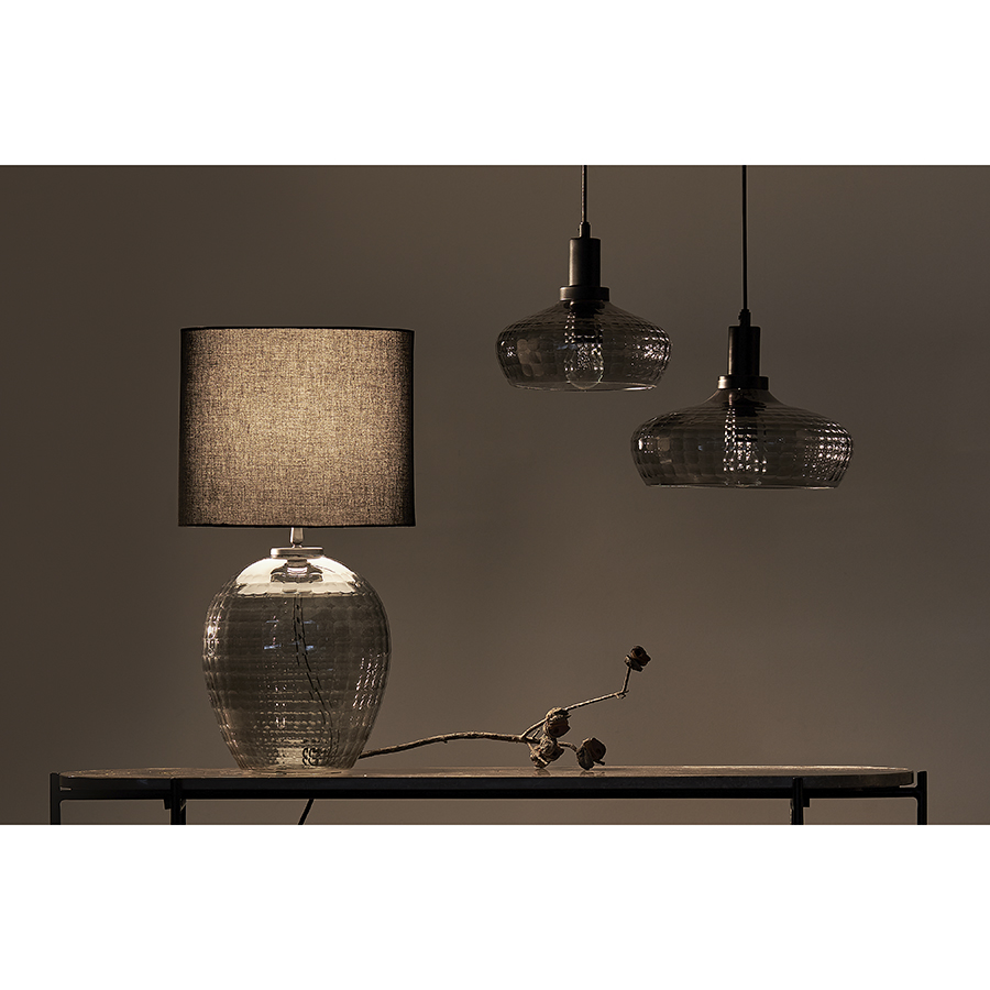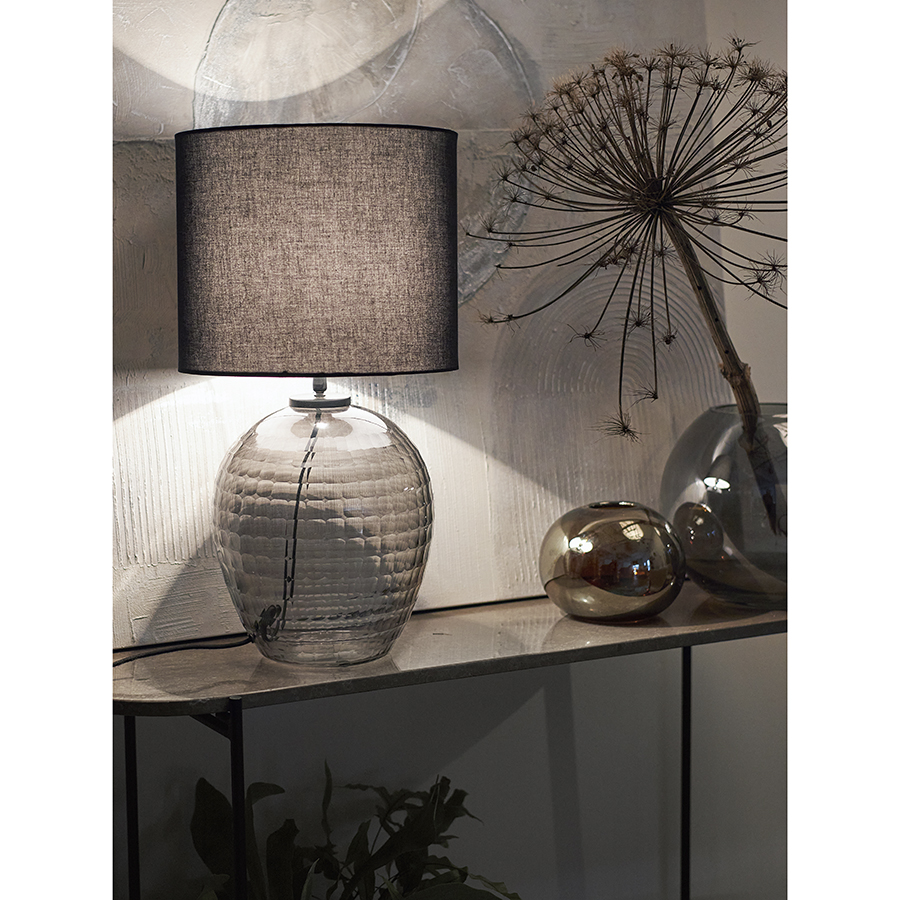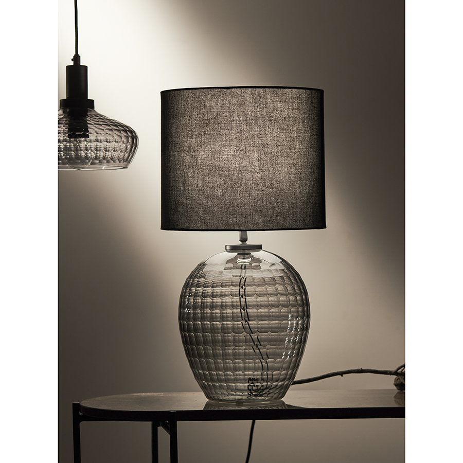 Материалы: стекло, железо, хлопок. Размеры: 24х24х40 см. Длина провода: 1,5 м. Цвет: серый/черный. Тип цоколя: Е27. Максимальная мощность лампы: 40 Вт. Степень пылевлагозащиты: IP20. Площадь освещения: 2,7 кв.м. Лампы в комплекте: нет.