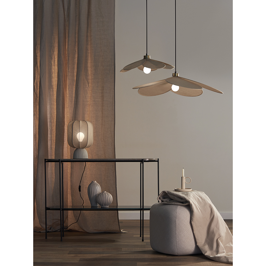 - Плафон из прочной джутовой ткани придает светильнику аутентичный вид, а также смягчает свет от лампы, мягко рассеивая его по комнате.