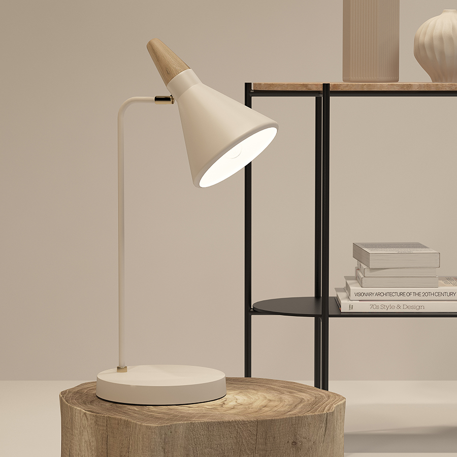 "Лампа настольная Thor в приятном бежевом оттенке – прекрасный вариант для оформления интерьера в стиле минимализм, хай-тек, сканди или лофт. Светильник поможет качественно подсветить рабочую зону, а также создать комфортные условия для чтения и отдыха.