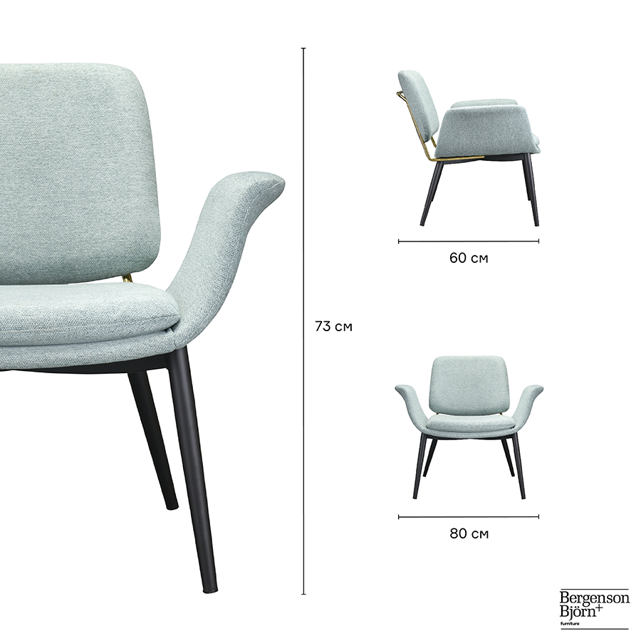 Лаунж-кресло Hilde, шенилл, светло-бирюзовое, Bergenson Bjorn