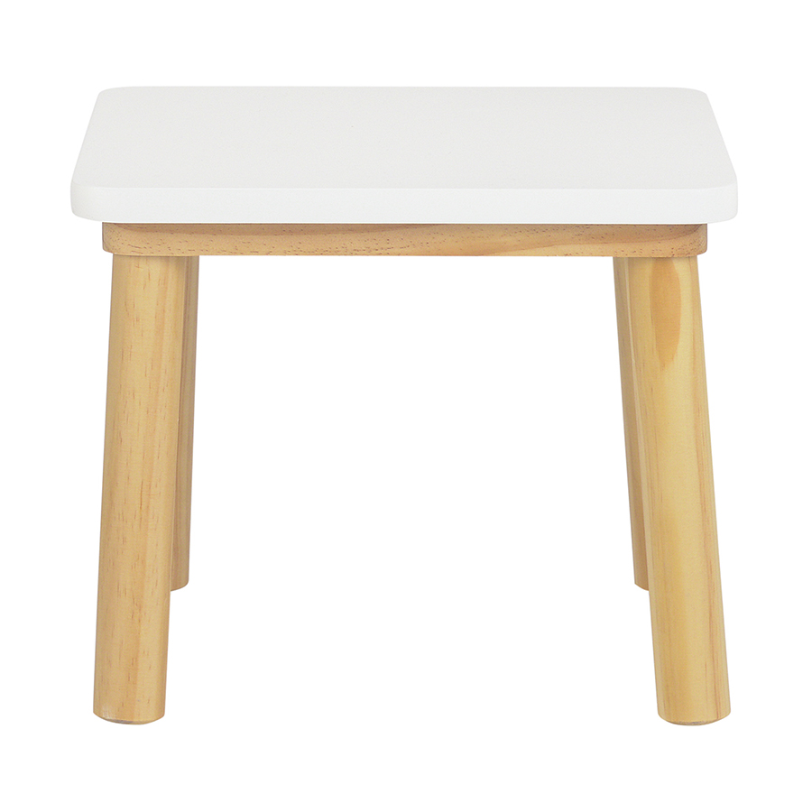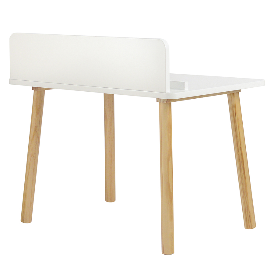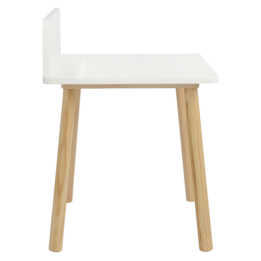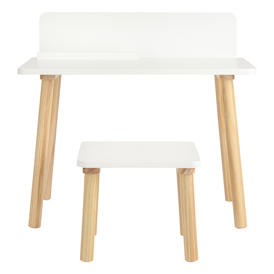 Материалы: древесина сосны, МДФ. Размеры: стол – 75х50х67 см, стул – 35х35х29 см. Высота столешницы: 50 см. Цвет: белый.