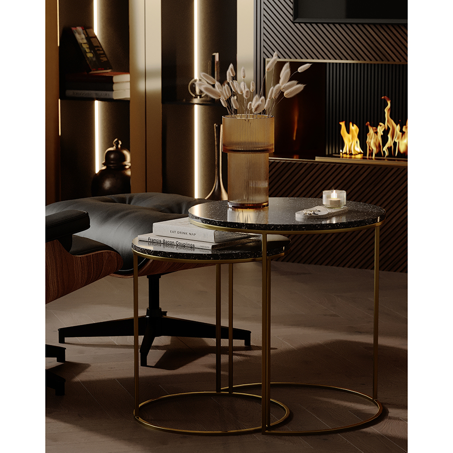 Набор из 2-х кофейных столиков Hans, 40 см и 50 см, черный мрамор, Bergenson Bjorn