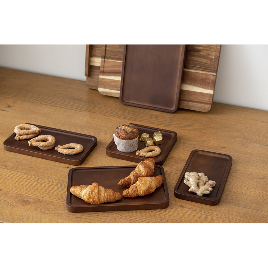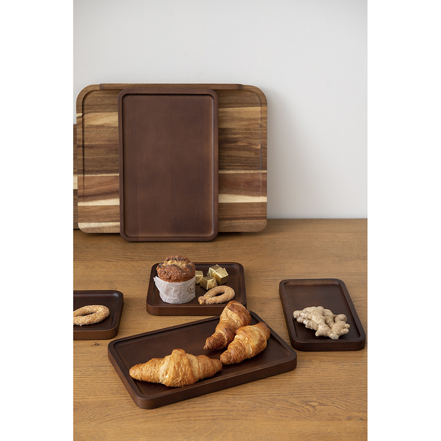 "Поднос Bernt – настоящее украшение любой сервировки и стильный акцент интерьера. Изделие из натуральной древесины ореха отличается презентабельным внешним видом, экологичностью, высокой прочностью и устойчивостью к износу. Края подноса немного возвышаются над основанием, образуя специальные бортики, которые надежно фиксируют продукты внутри и делают дизайн более привлекательным. Аксессуар прекрасно вписывается в различные стилевые решения кухни и столовой.