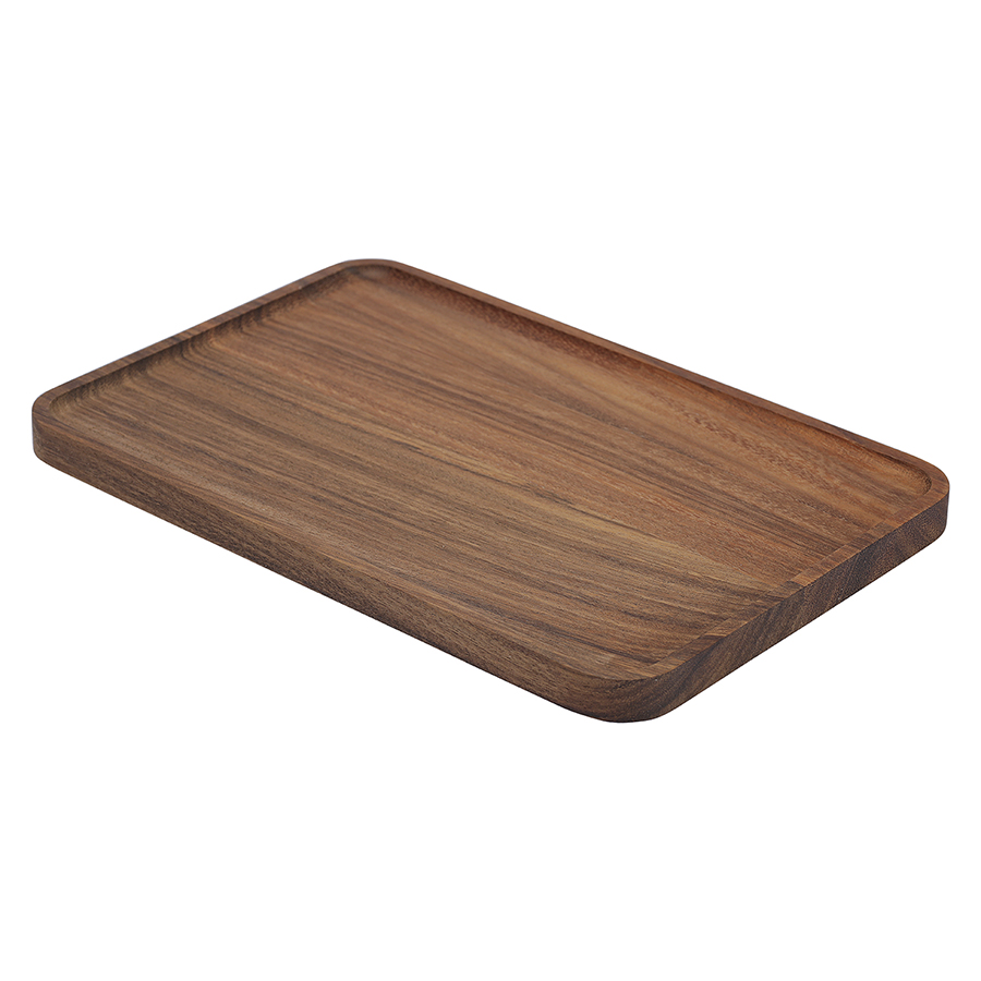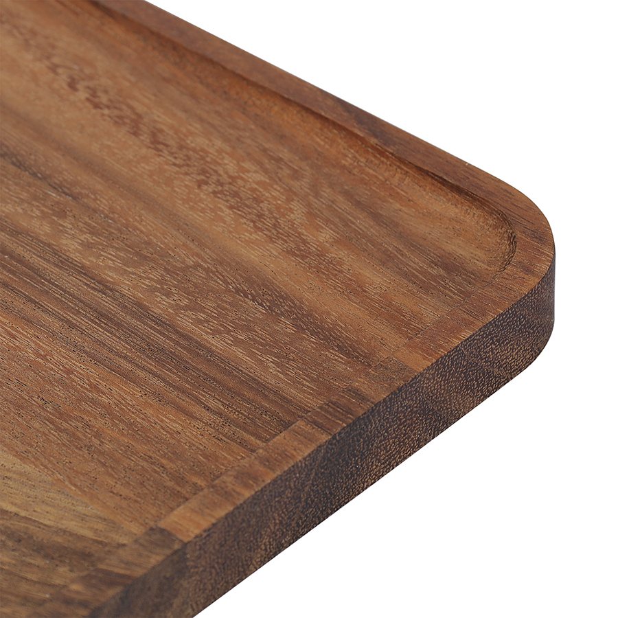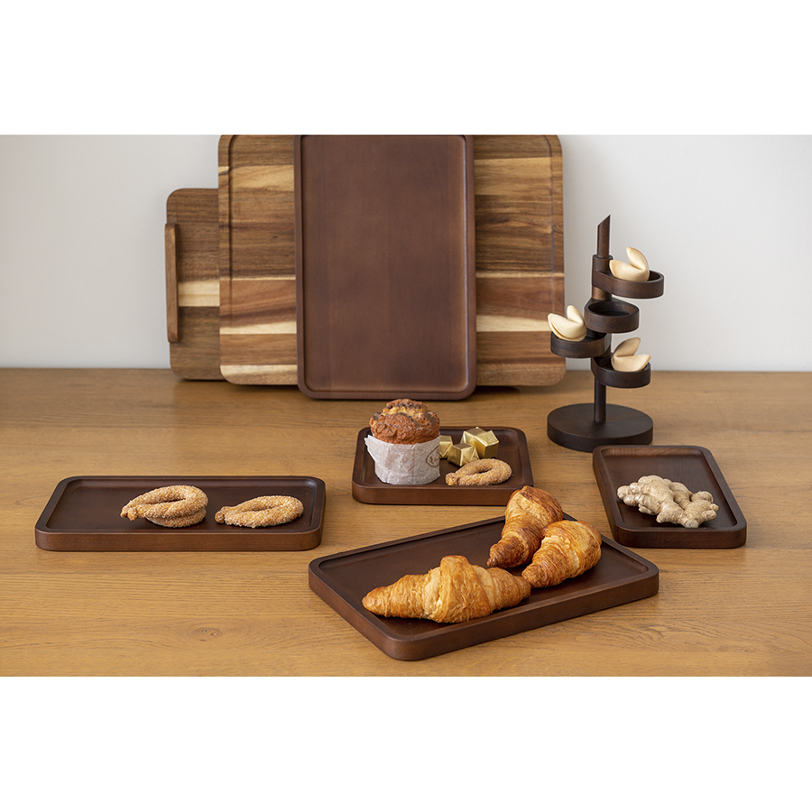 "Поднос Bernt – настоящее украшение любой сервировки и стильный акцент интерьера. Изделие из натуральной древесины ореха отличается презентабельным внешним видом, экологичностью, высокой прочностью и устойчивостью к износу. Края подноса немного возвышаются над основанием, образуя специальные бортики, которые надежно фиксируют продукты внутри и делают дизайн более привлекательным. Аксессуар прекрасно вписывается в различные стилевые решения кухни и столовой.
