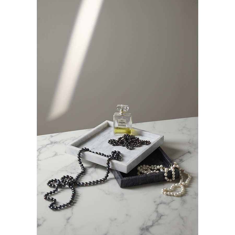 Помимо внешней привлекательности, мраморный поднос отличается высокими прочностными характеристиками и долговечностью. Изделие сохраняет первозданный вид на протяжении долгих лет, не требуя специального ухода. Он может использоваться в качестве оригинальной подставки для украшений, благовоний, свечей, парфюма, косметики и различных аксессуаров в любой из комнат. Дизайн актуален для большинства популярных интерьерных стилей: минимализм, арт-деко, неоклассика, сканди, фьюжн и других.
