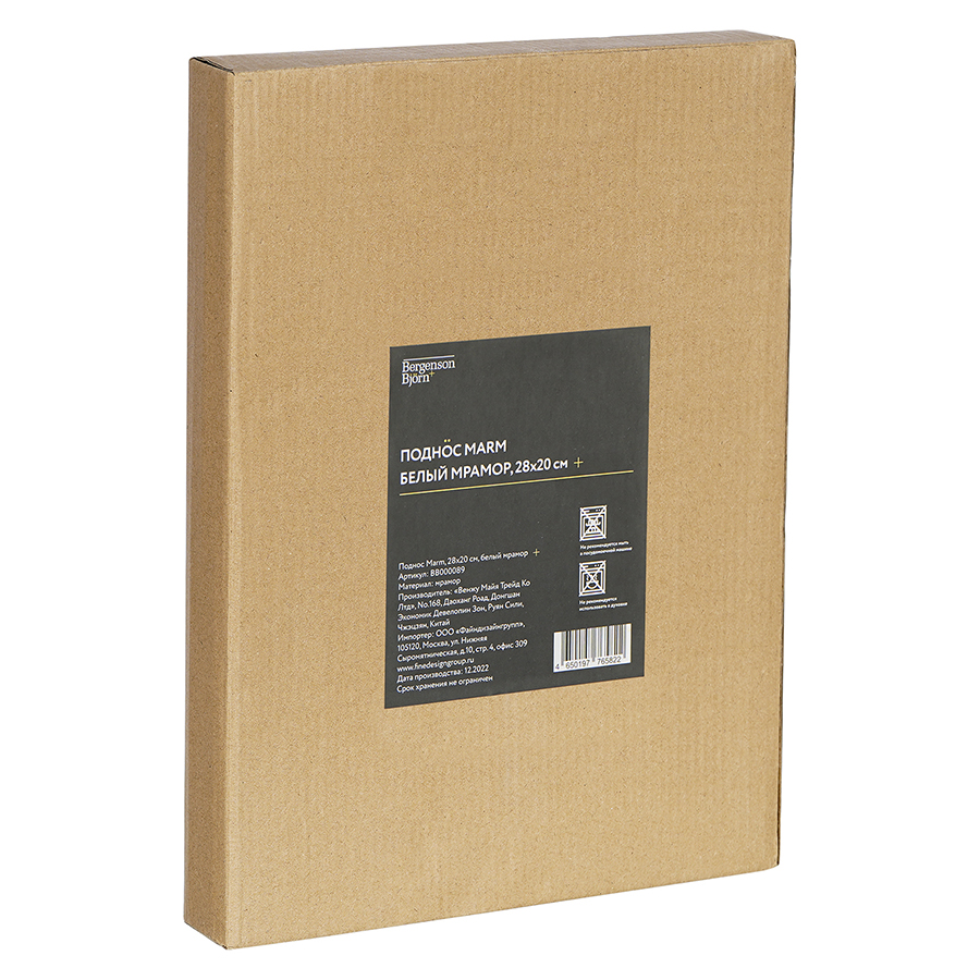 Поднос Marm, 28х20 см, белый мрамор, Bergenson Bjorn