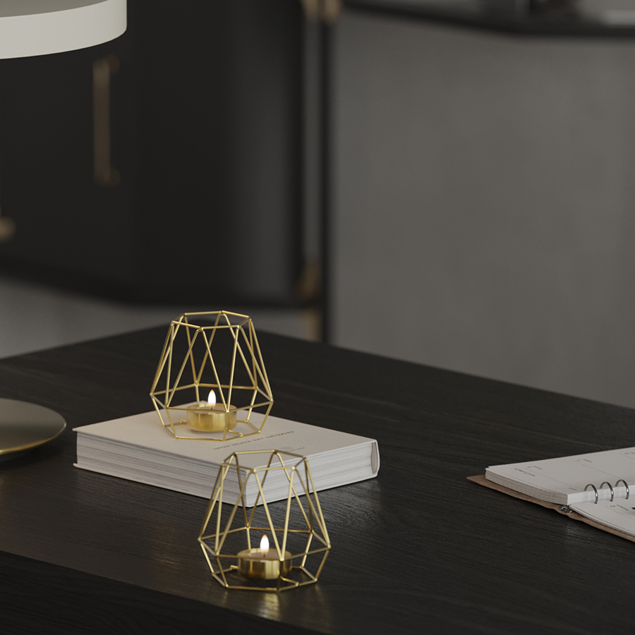 - За счет компактных размеров подсвечник легко помещается на полке, тумбе, журнальном столике или комоде.