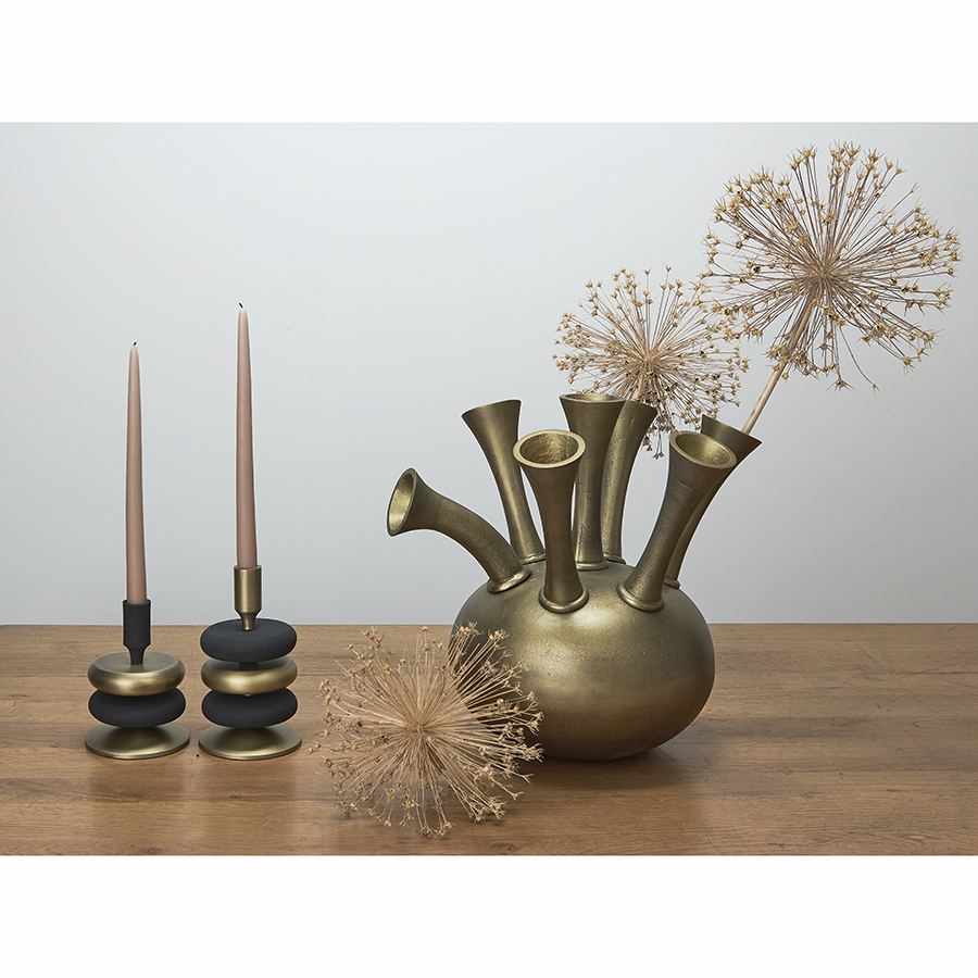 Подсвечник Stone, 20 см, черный/античная латунь, Bergenson Bjorn