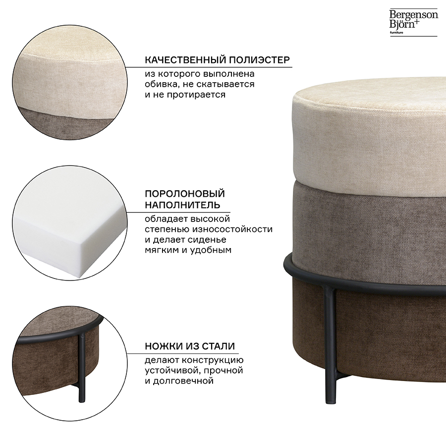 Пуф Norunn, шенилл, бежево-коричневый, Bergenson Bjorn