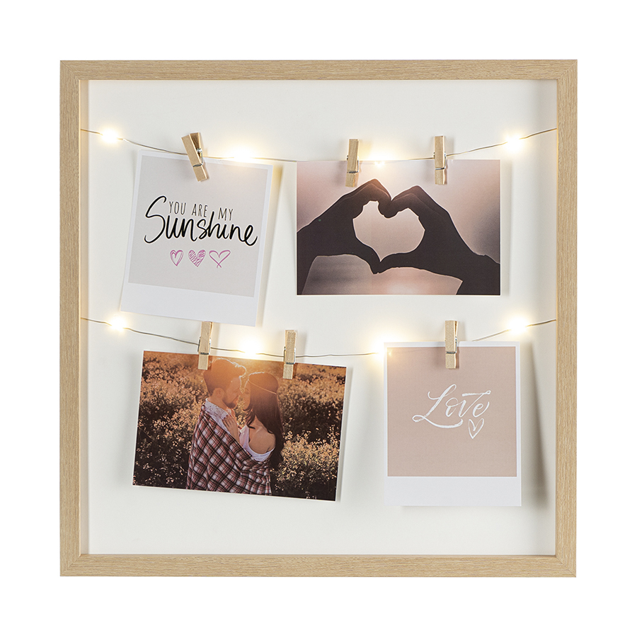 Рамка для фотографий с подсветкой Everyday, 38х38 см, белая/натуральное дерево, Bergenson Bjorn