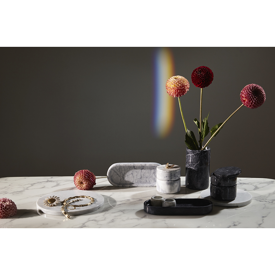 "Коллекция Marm сочетает в себе естественную красоту природных материалов и утонченность классического дизайна. Аксессуары из мрамора привносят в оформление интерьера нотки элегантности, подчеркивая безупречный вкус хозяев дома. Уникальные узоры и оттенки натурального камня делают каждый предмет неповторимым.