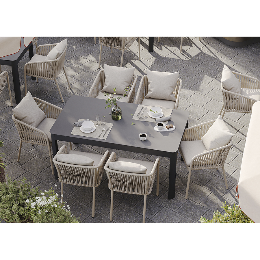 "Стол обеденный Leif – прекрасный вариант для обустройства уютного пространства в зоне отдыха и приема пищи. Вы можете использовать этот предмет мебели не только в помещении, но и на открытой террасе или в саду, не беспокоясь о том, что он будет поврежден дождем, солнцем или влагой.
