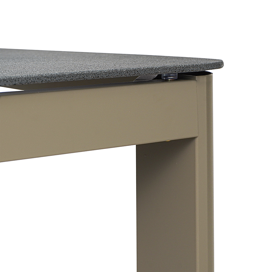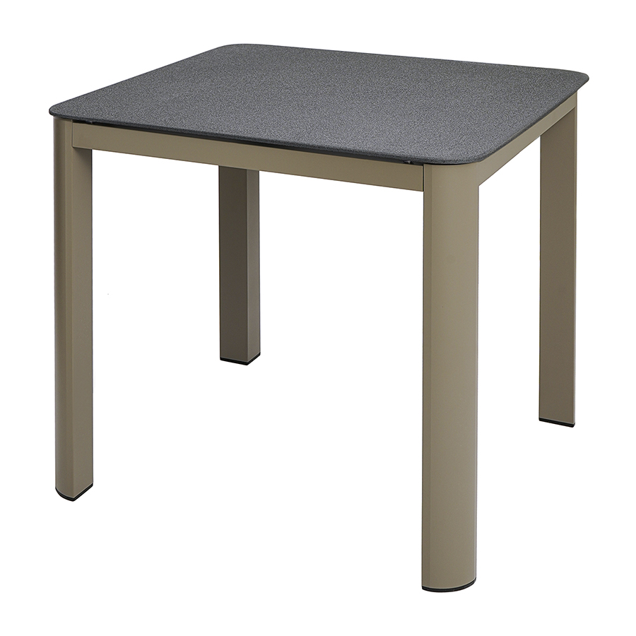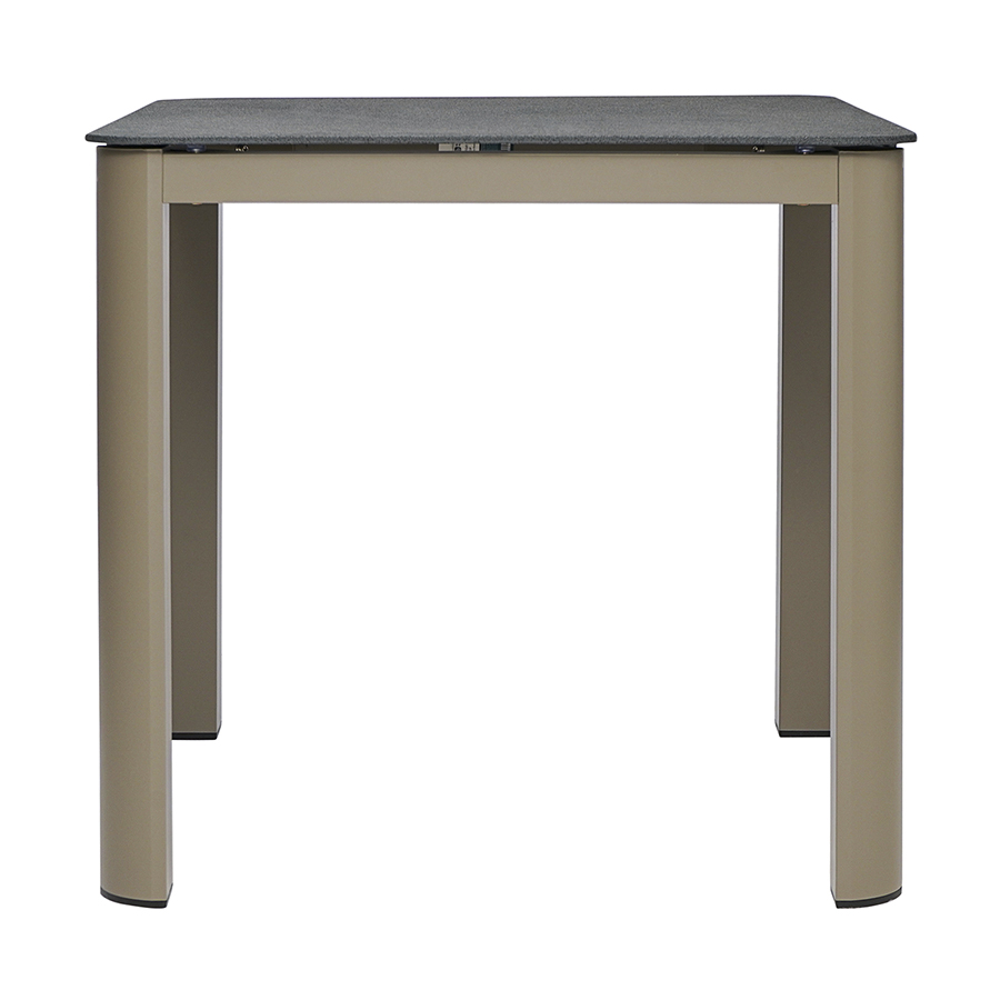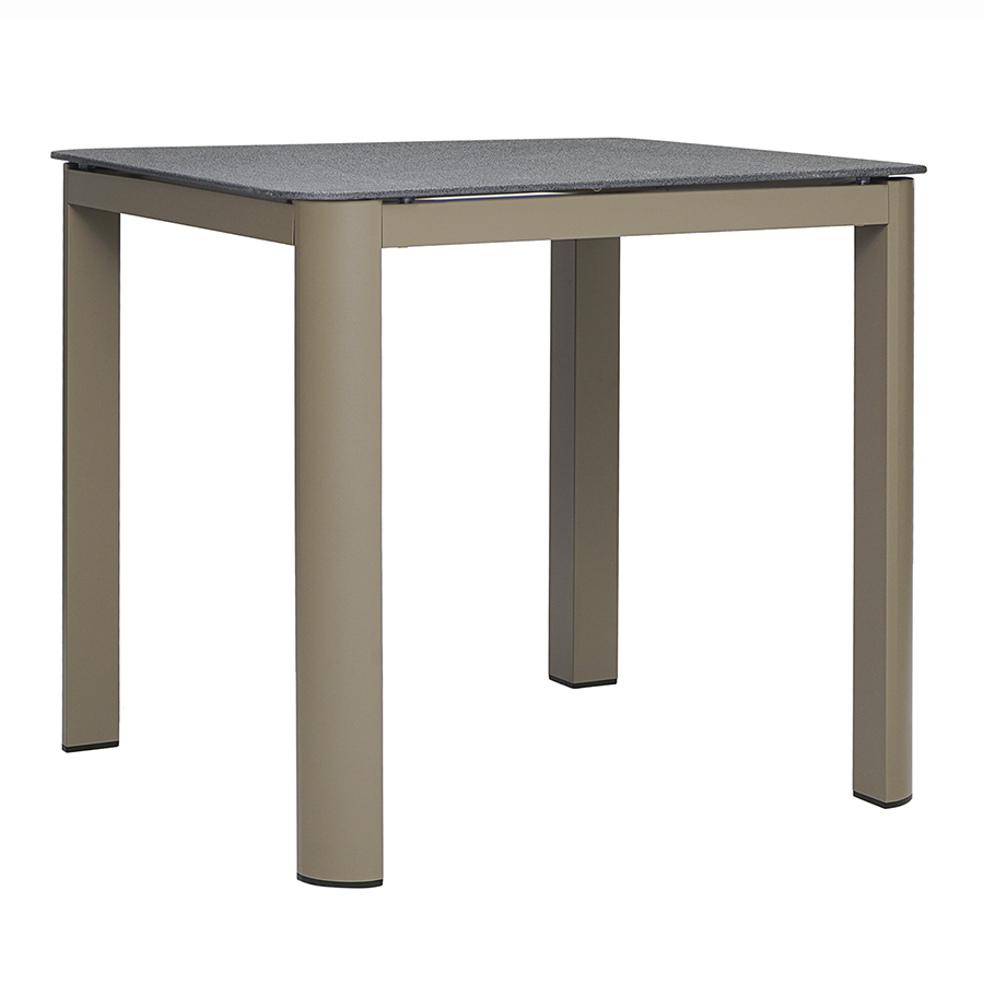 Материал: алюминий, закаленное кварцевое стекло. Размеры: 80х80х75 см. Расстояние между ножками: 76 см. Цвет: серо-бежевый.