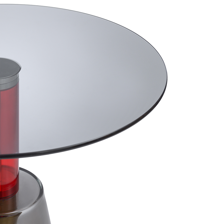 "Кофейный столик Amalie привлекает внимание необычным дизайном – все элементы конструкции выполнены из стекла. Столешница и основание имеют серый оттенок. Ярким акцентом выступает ножка красного цвета. Такой предмет мебели органично вписывается в различные интерьерные стили: минимализм, фьюжн, поп-арт, хай-тек и др.