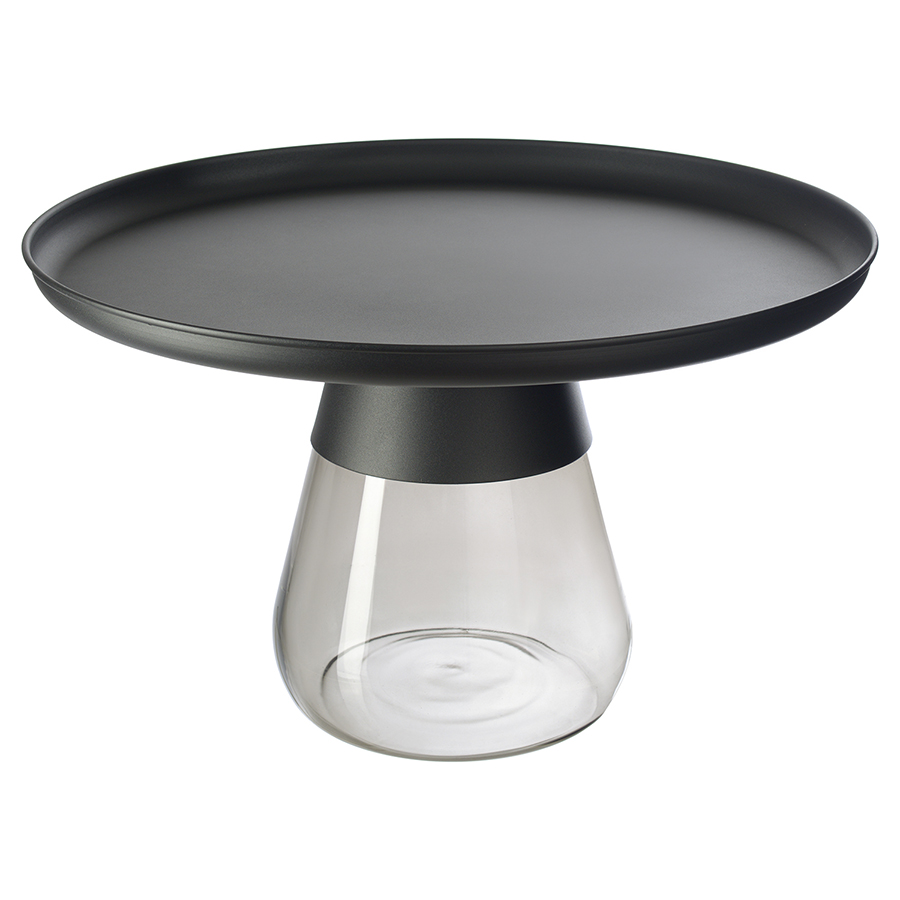 Материал: столешница – сталь, основание – закаленное стекло. Максимальная нагрузка - 10 кг. Диаметр: 70,5 см. Высота: 43 см. Цвет: черный/серый.
