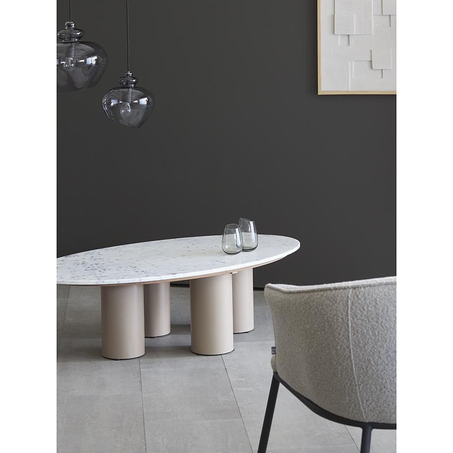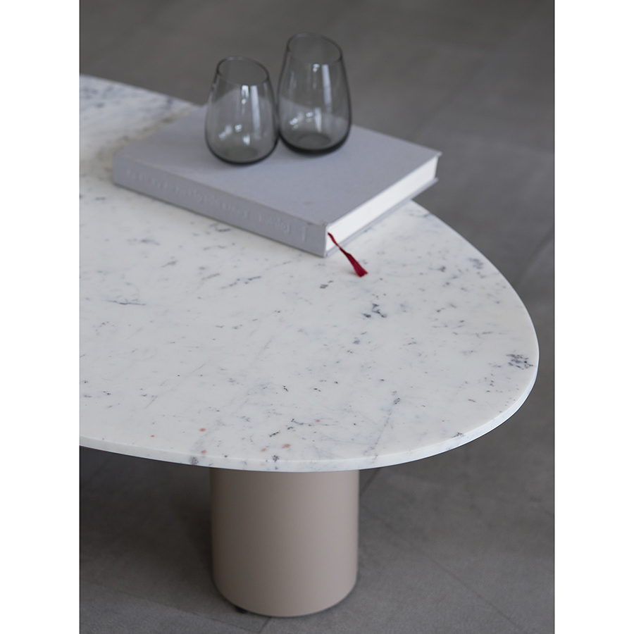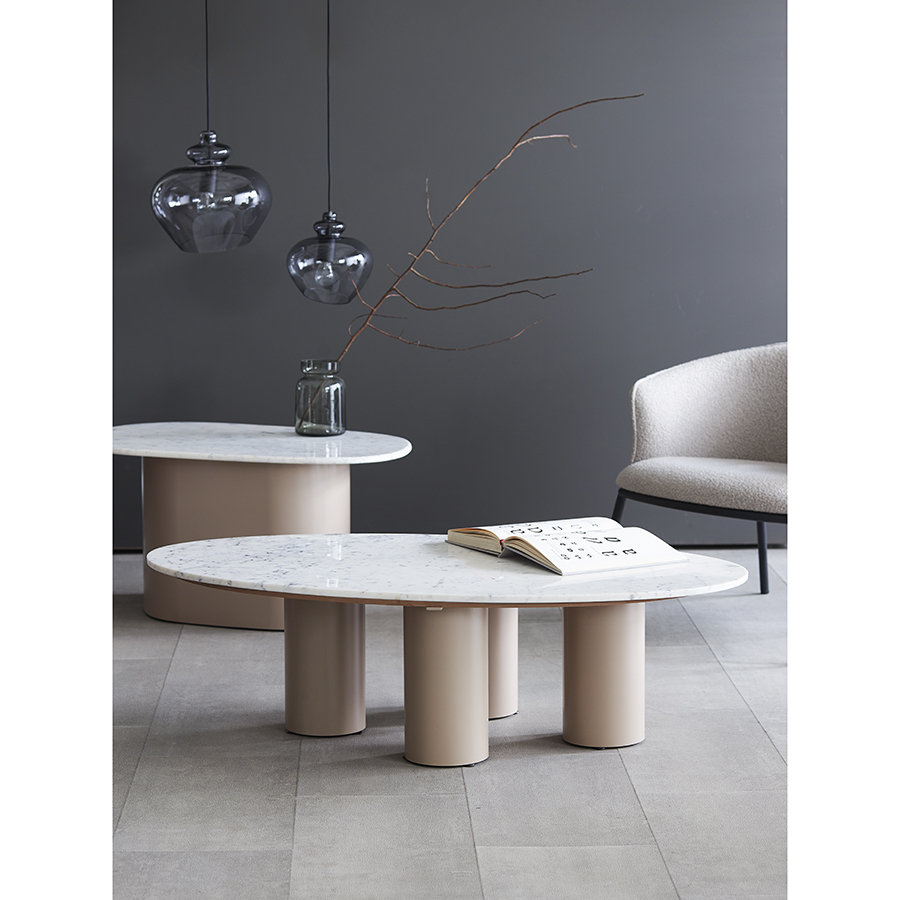 "Столик кофейный Mojo от бренда Bergenson Bjorn – прекрасное сочетание эстетики и функциональности. Основание из железа придает мебели современный вид, а столешница из мрамора добавляет дизайну элегантность. Модель идеально подходит для размещения в центре гостиной или уютной зоны отдыха. Столик придаст интерьеру индивидуальность и шарм, станет удобным местом для хранения книг, журналов и демонстрации декора.