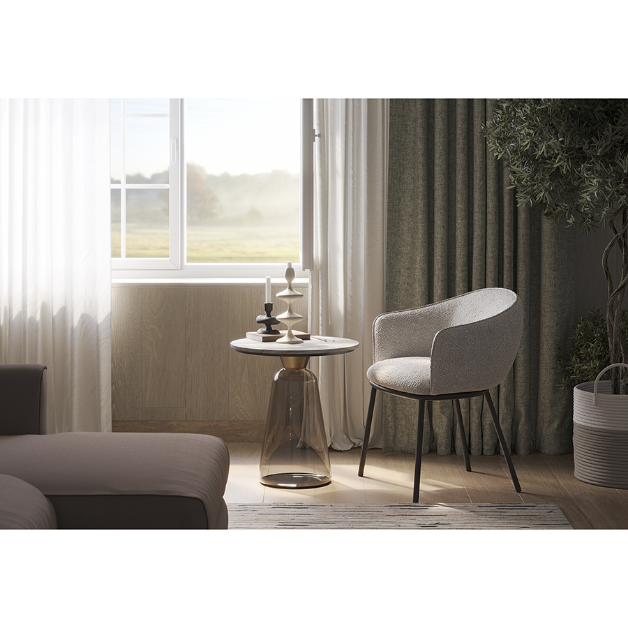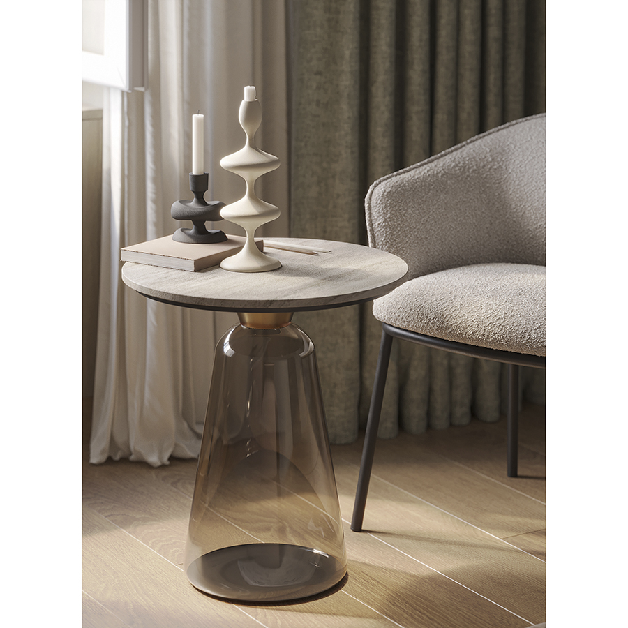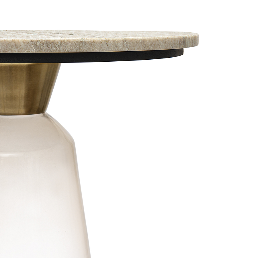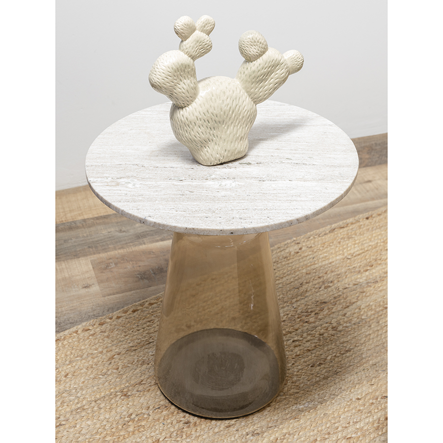 Материалы: столешница – мрамор, основание – стекло. Диаметр: 50 см. Высота: 54 см. Цвет: мрамор/бежевый.