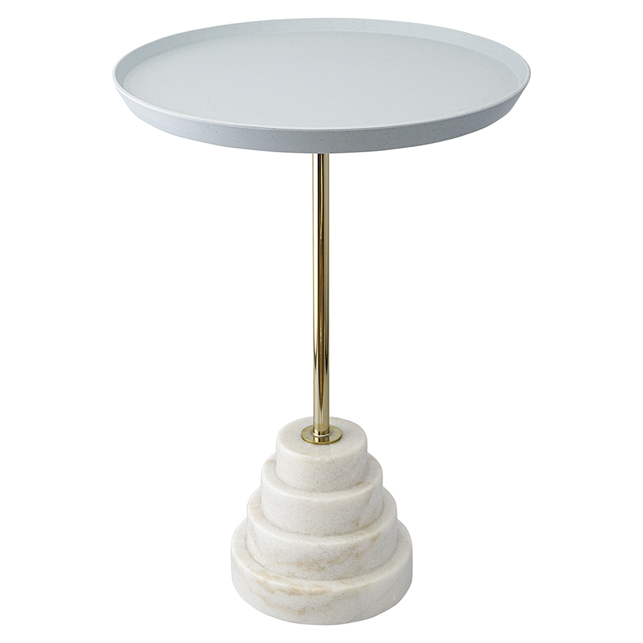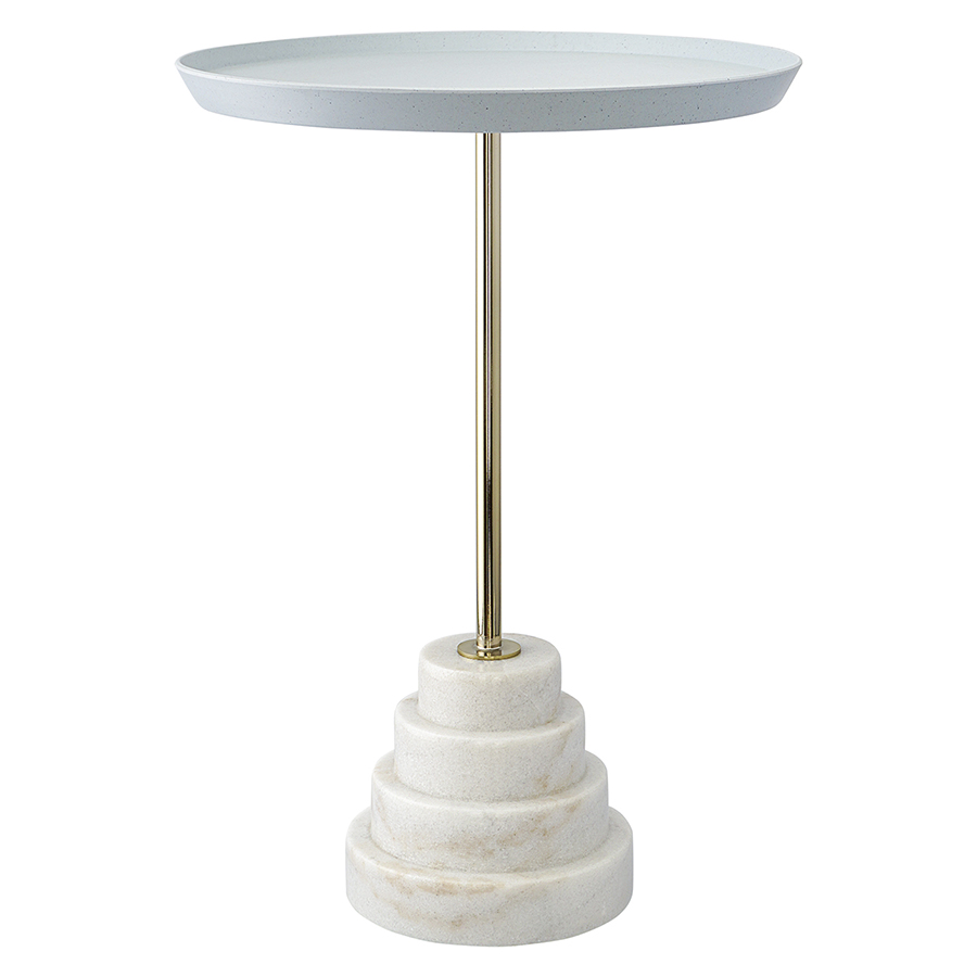 Материалы: столешница – переработанный материал, каркас – сталь, основание – мрамор. Размеры: 37,7х37,7х53 см. Цвет: серый/белый.