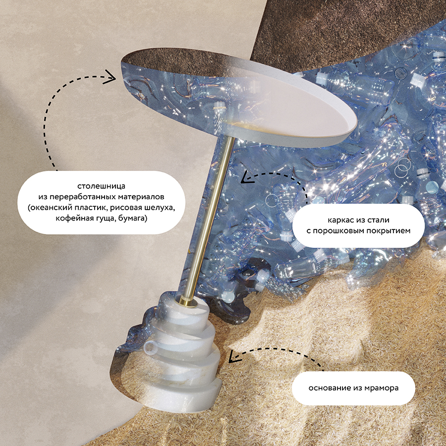 "Столик кофейный Sustainable collection – не просто предмет мебели, а олицетворение заботы об окружающей среде и стремления к функциональному дизайну.