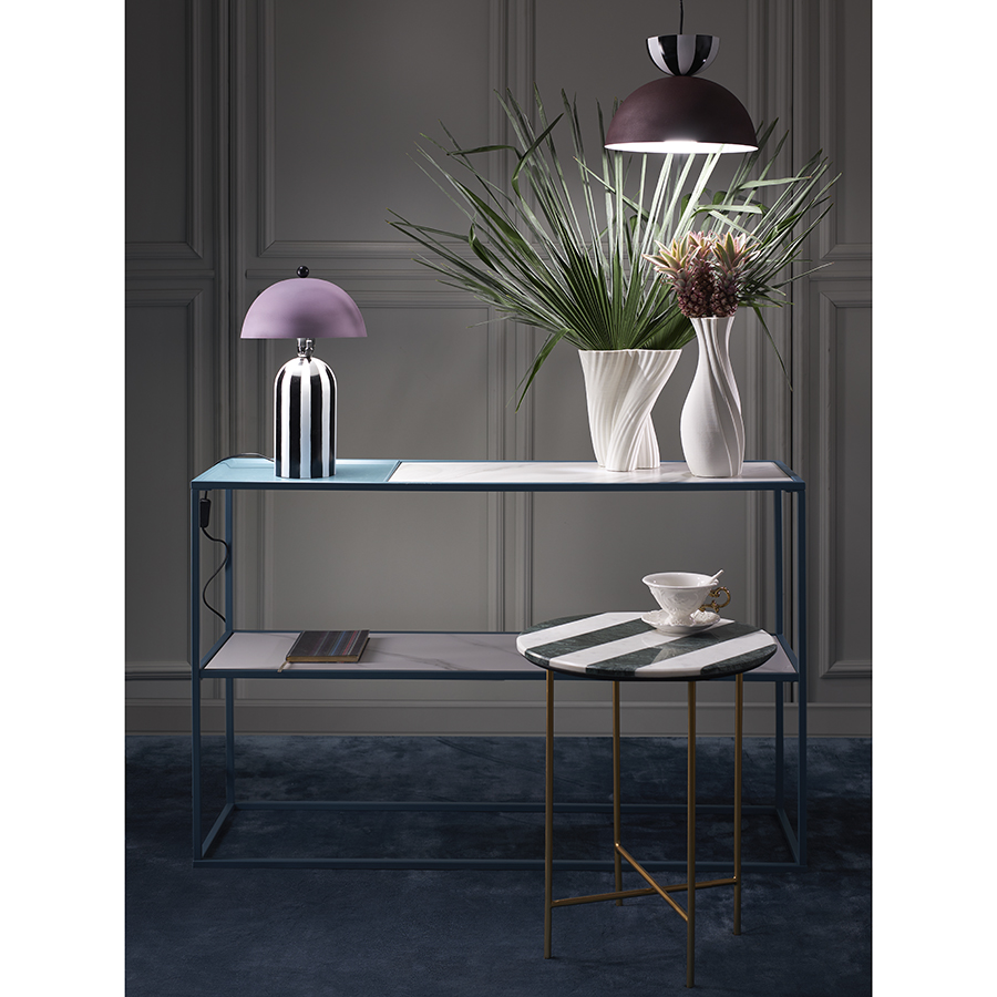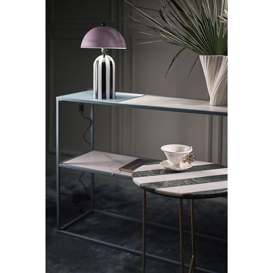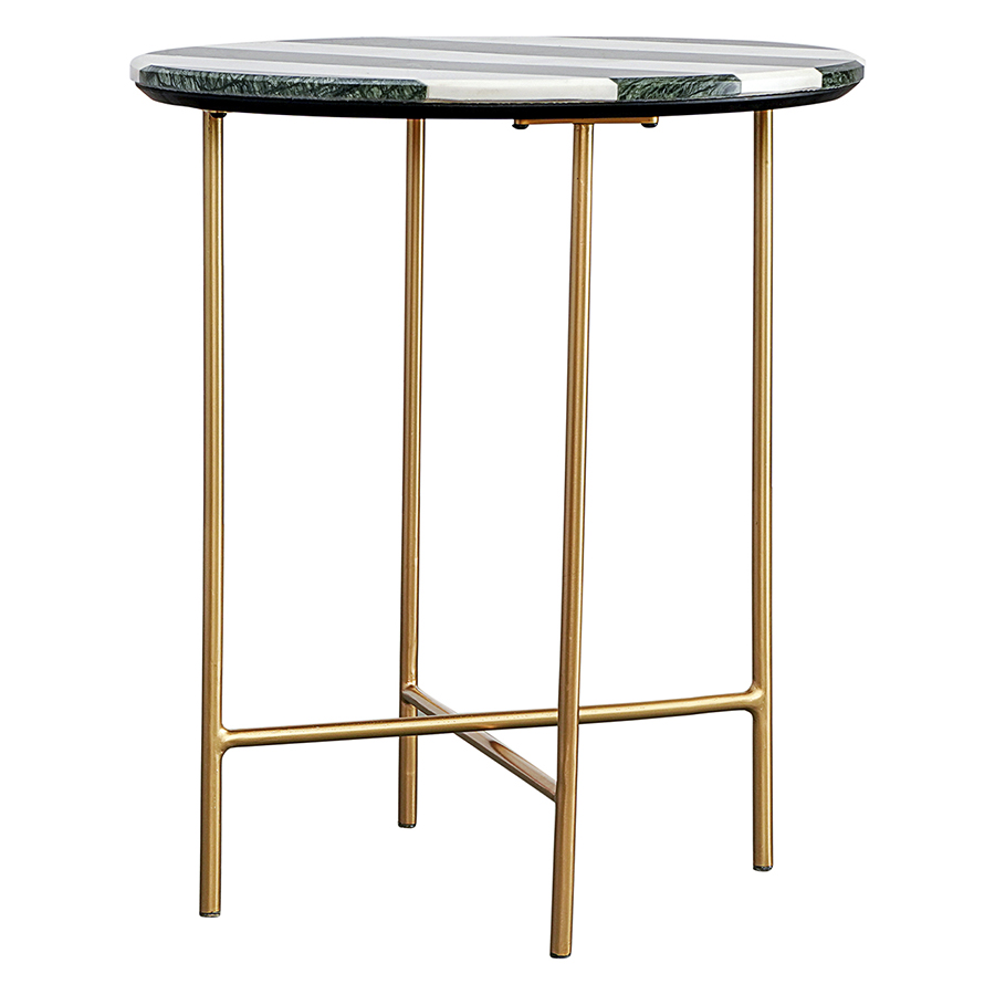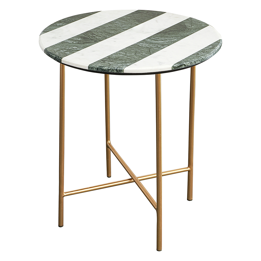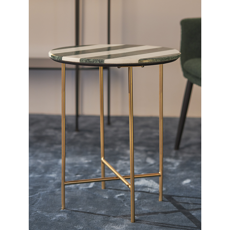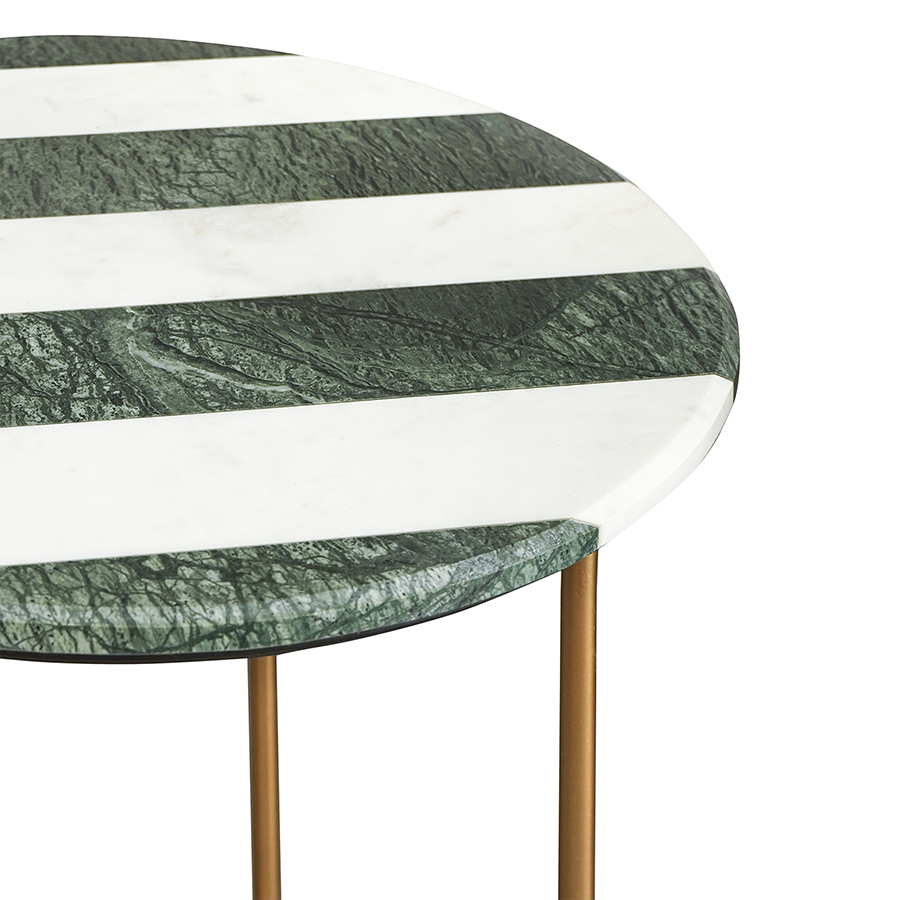 - Сочетание столешницы с полосатым узором и ножек с золотистым покрытием создает интересный визуальный эффект, который добавляет особый шарм в любое пространство.
