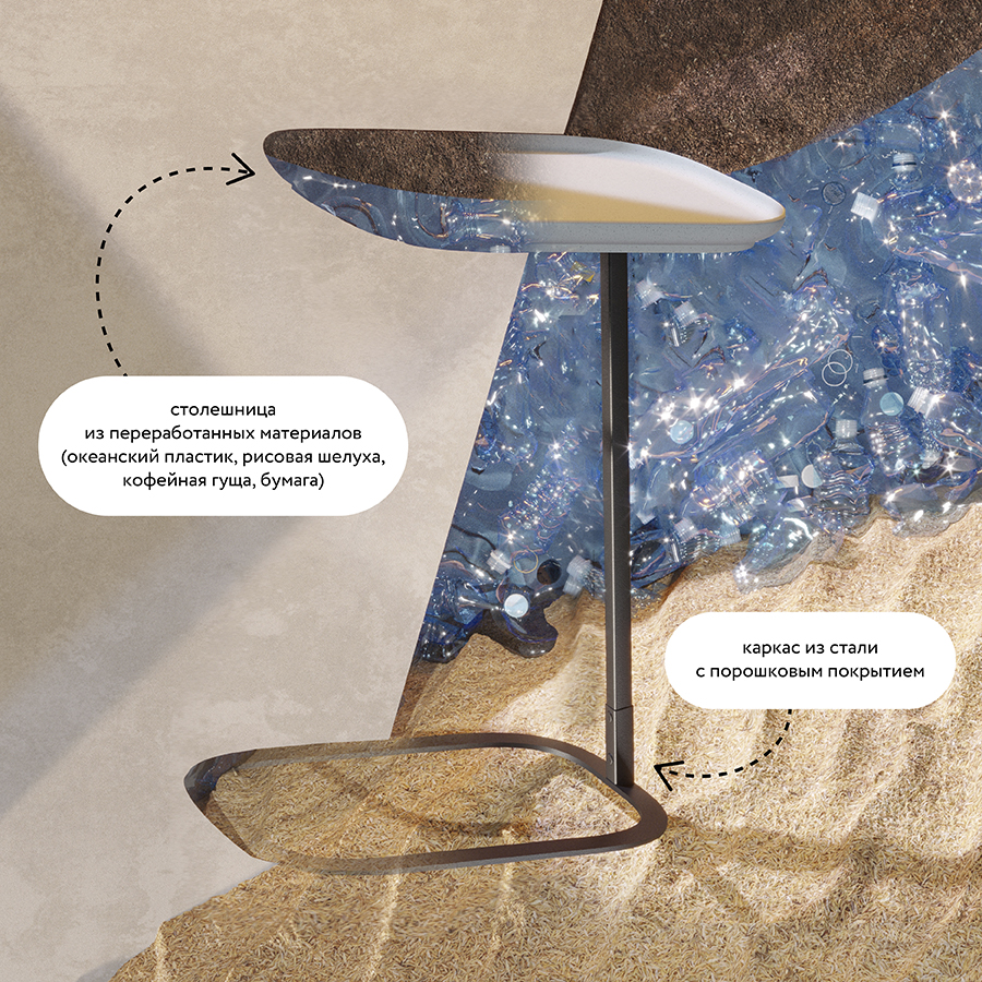 "Столик приставной Sustainable collection – не просто предмет мебели, а олицетворение заботы об окружающей среде и стремления к функциональному дизайну.