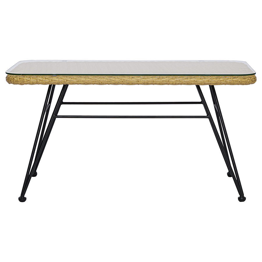 "Столик журнальный Vetle – стильный акцент, который украсит собой любое пространство. Сочетание элементов из стали, искусственного ротанга и стекла обеспечивает мебели интересный вид и делает ее практичной и долговечной.