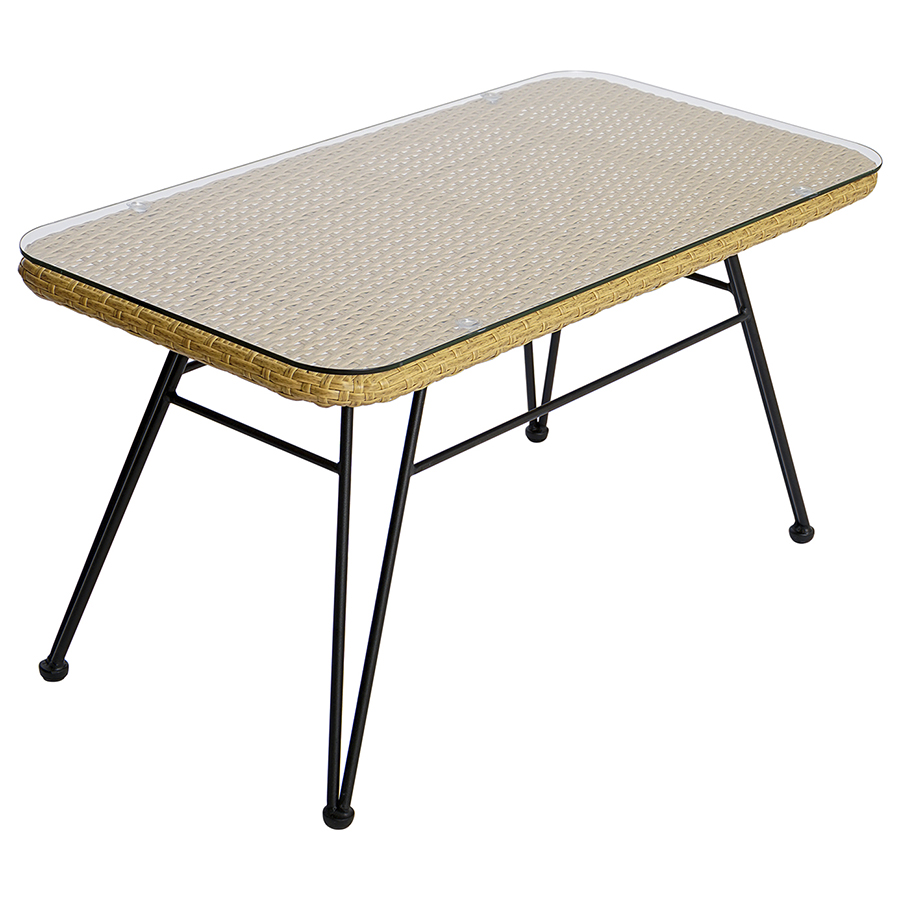 Материал: сталь, искусственный ротанг, стекло. Размеры: 80х40х40 см. Расстояние между ножками: 73 см и 36 см.