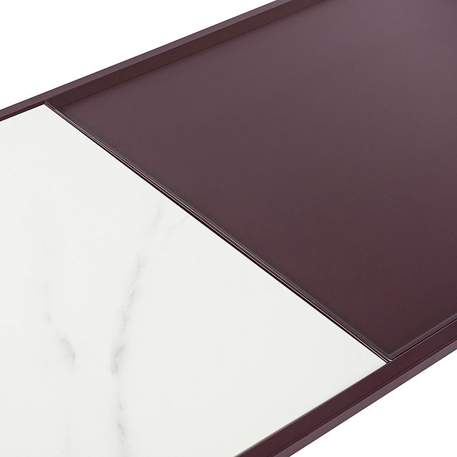 Материалы: столешница – углеродистая сталь, керамика, каркас – сталь с порошковым покрытием. Размеры: 110х50х37 см. Цвет: белый/сливовый.