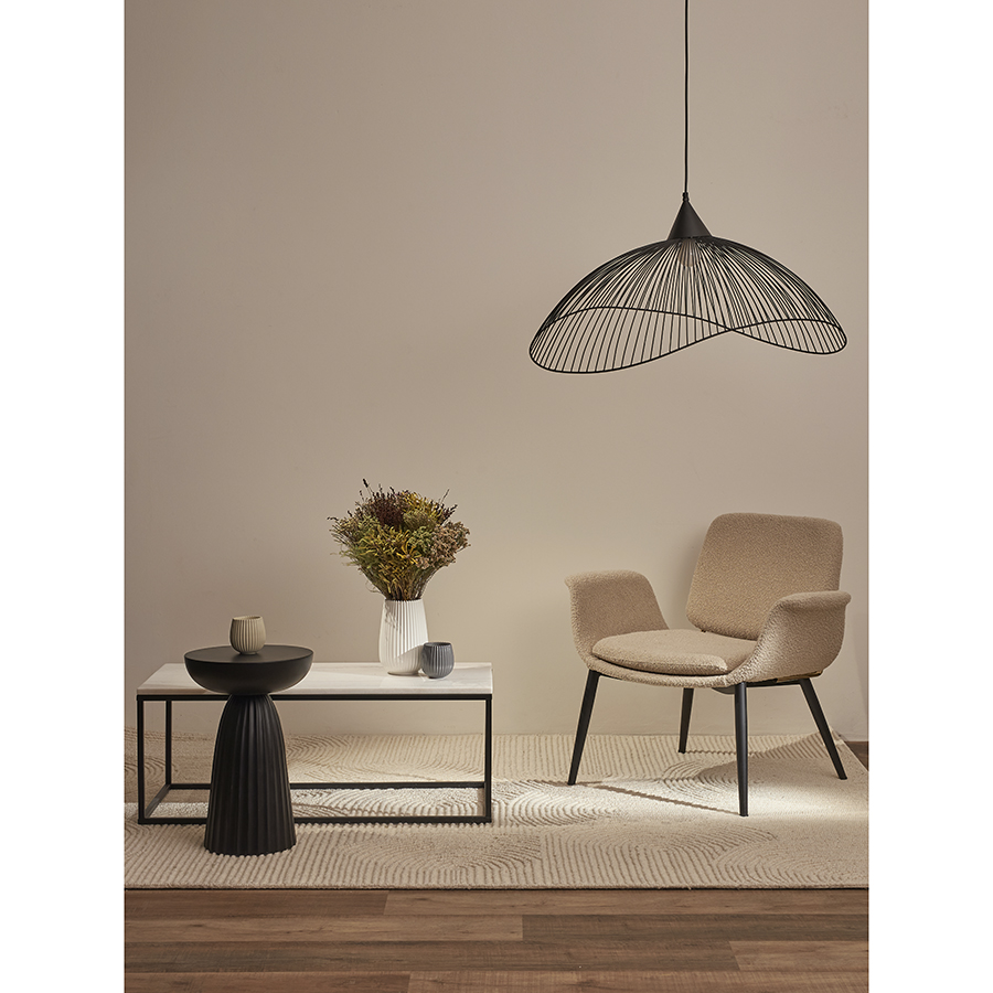 Материалы: столешница – мрамор, каркас – сталь с порошковым покрытием. Размеры: 90х40х35 см. Цвет: белый/черный.