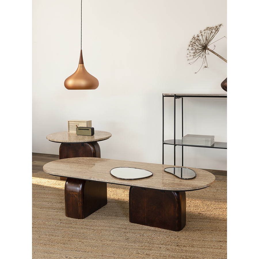"Столик журнальный Torhill от дизайнерского бренда Bergenson Bjorn – элегантное и функциональное дополнение к любому интерьеру. Столешница из травертина и основание из дерева создают прекрасный тандем, который привносит в интерьер ощущение гармонии и единения с природой.