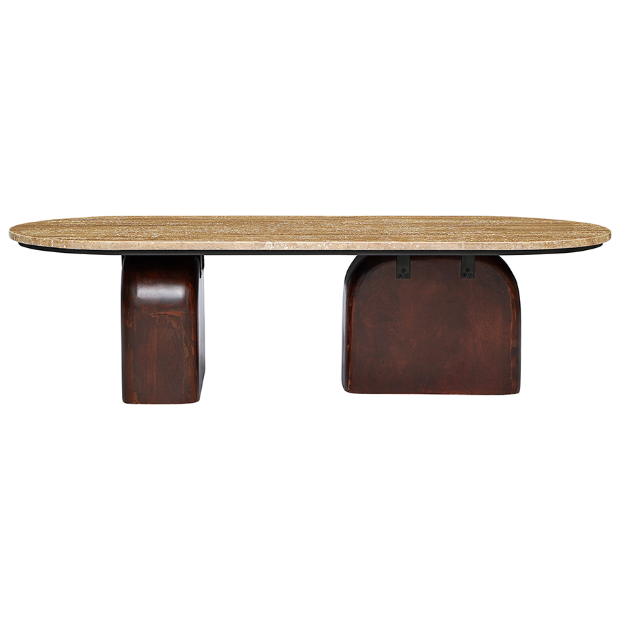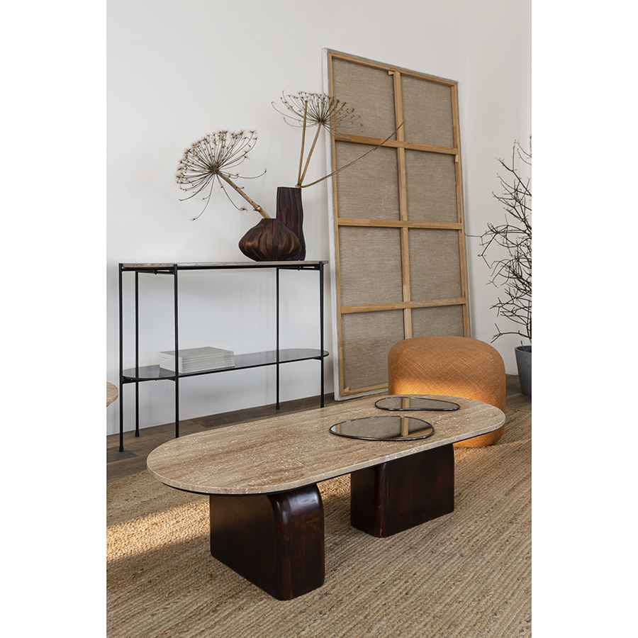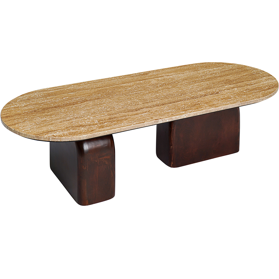- Нейтральность травертина и естественный оттенок древесины позволяют вписать столик в интерьер, оформленный в любой цветовой гамме.