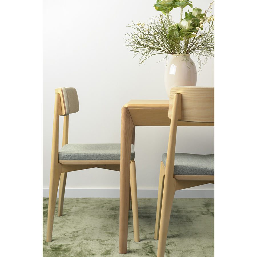 Cтул выполнен из массива ясеня – твердой породы дерева с прекрасной текстурой и отличными эксплуатационными свойствами. Плотность и прочность древесины сравнима с характеристиками дуба, что обеспечивает изделию из данного материала высокую устойчивость к деформации, ударам и долговечную конструкцию. Ткань обивки обладает высокими показателями износостойкости. Используемый в качестве наполнителя сиденья пенополиуретан отличается комфортной жесткостью.