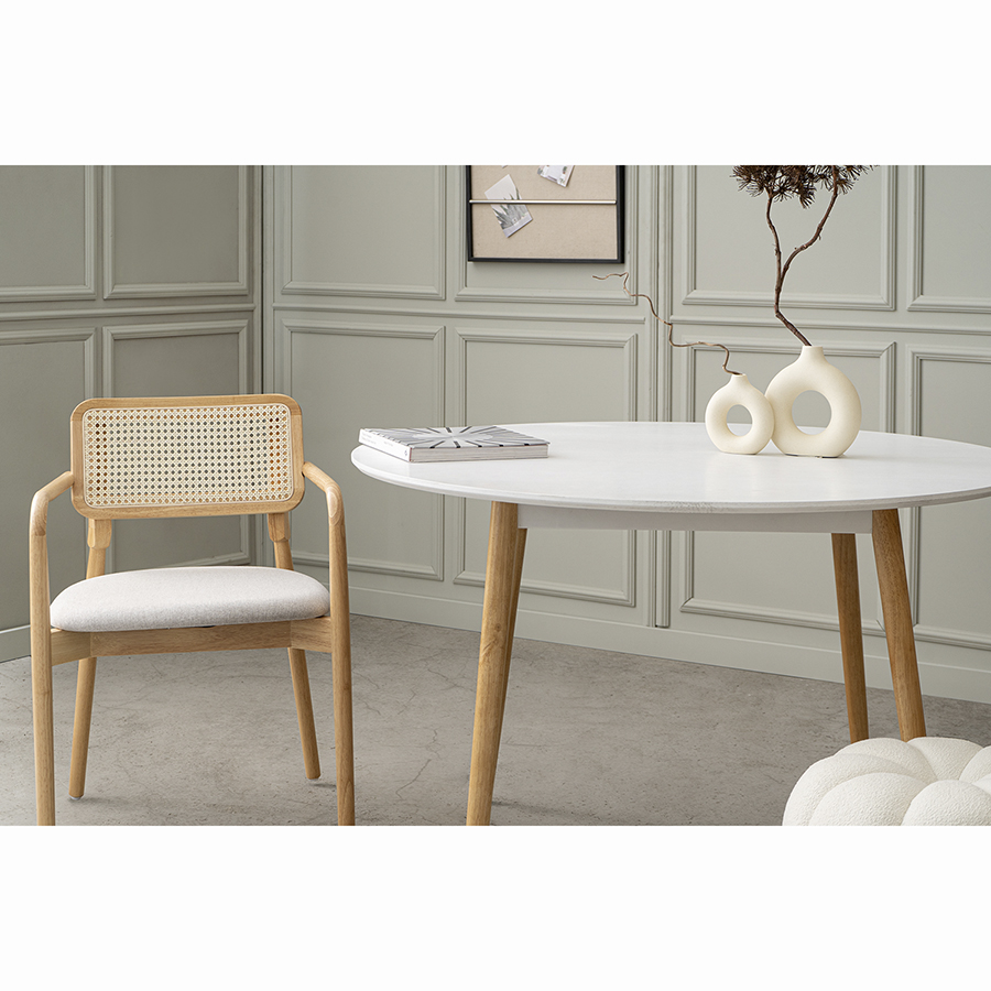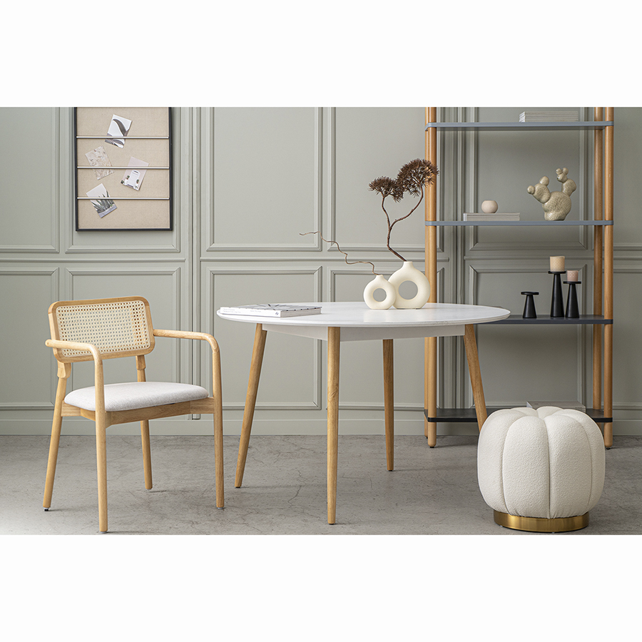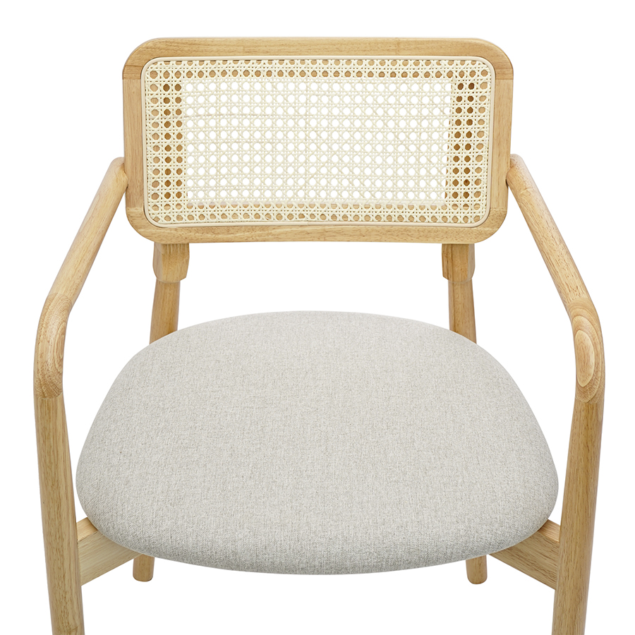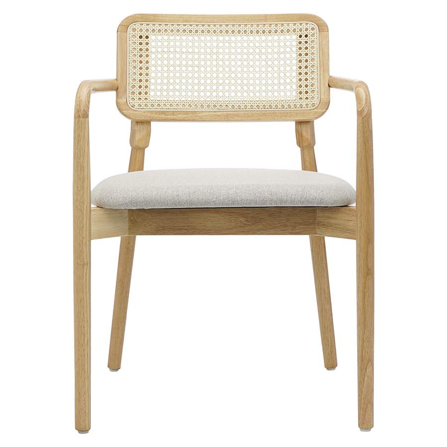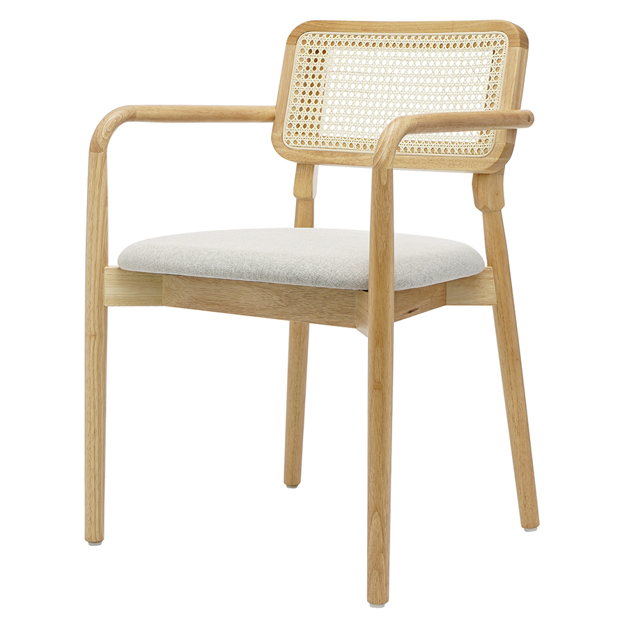 Сиденье с мягким пенополиуретановым наполнителем, широкая спинка и подлокотники гарантируют комфортную посадку и оптимальную поддержку спины, позволяя без чувства усталости наслаждаться долгими застольями в кругу друзей и семьи. Тканевая обивка приятна на ощупь, практична и проста в уходе. Сочетание дерева и текстиля делает стул уютным и отлично комбинируется с различными вариантами отделки и декора.