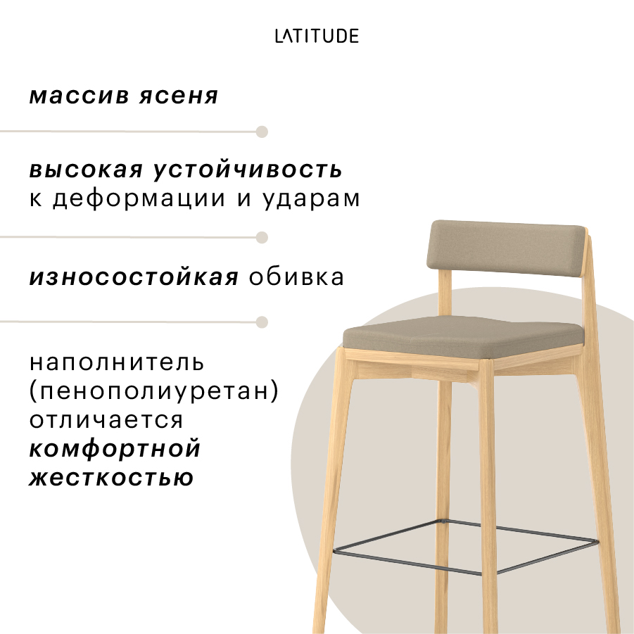 Стул барный Aska, рогожка, ясень/бежевый, LATITUDE