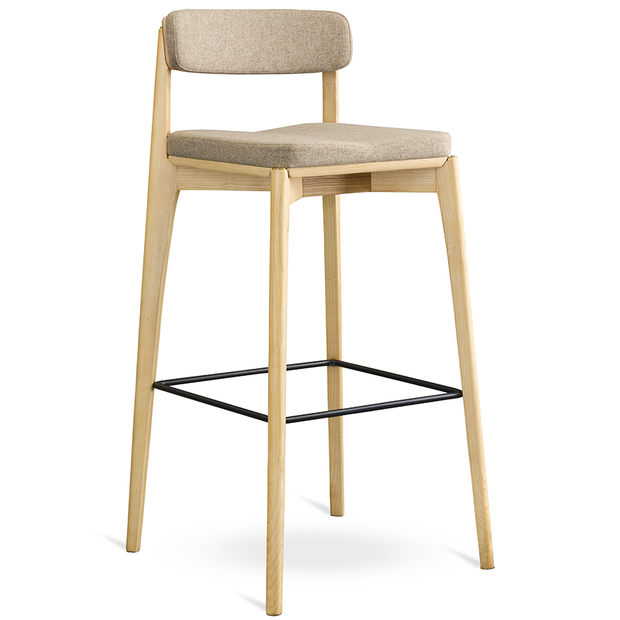 Cтул барный выполнен из массива ясеня – твердой породы дерева с прекрасной текстурой и отличными эксплуатационными свойствами. Плотность и прочность древесины сравнима с характеристиками дуба, что обеспечивает изделию из данного материала высокую устойчивость к деформации, ударам и долговечную конструкцию. Ткань обивки обладает высокими показателями износостойкости. Используемый в качестве наполнителя сиденья пенополиуретан отличается комфортной жесткостью.