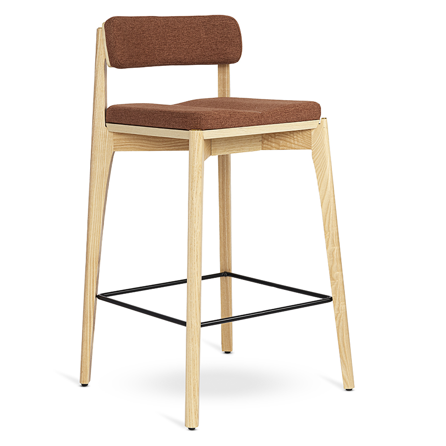 Cтул барный выполнен из массива ясеня – твердой породы дерева с прекрасной текстурой и отличными эксплуатационными свойствами. Плотность и прочность древесины сравнима с характеристиками дуба, что обеспечивает изделию из данного материала высокую устойчивость к деформации, ударам и долговечную конструкцию. Ткань обивки обладает высокими показателями износостойкости. Используемый в качестве наполнителя сиденья пенополиуретан отличается комфортной жесткостью.
