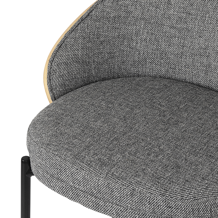 - Закругленная спинка с мягкой обивкой, украшенная шпоном ясеня, привносит в дизайн нотки элегантности и обеспечивает качественную поддержку спины.