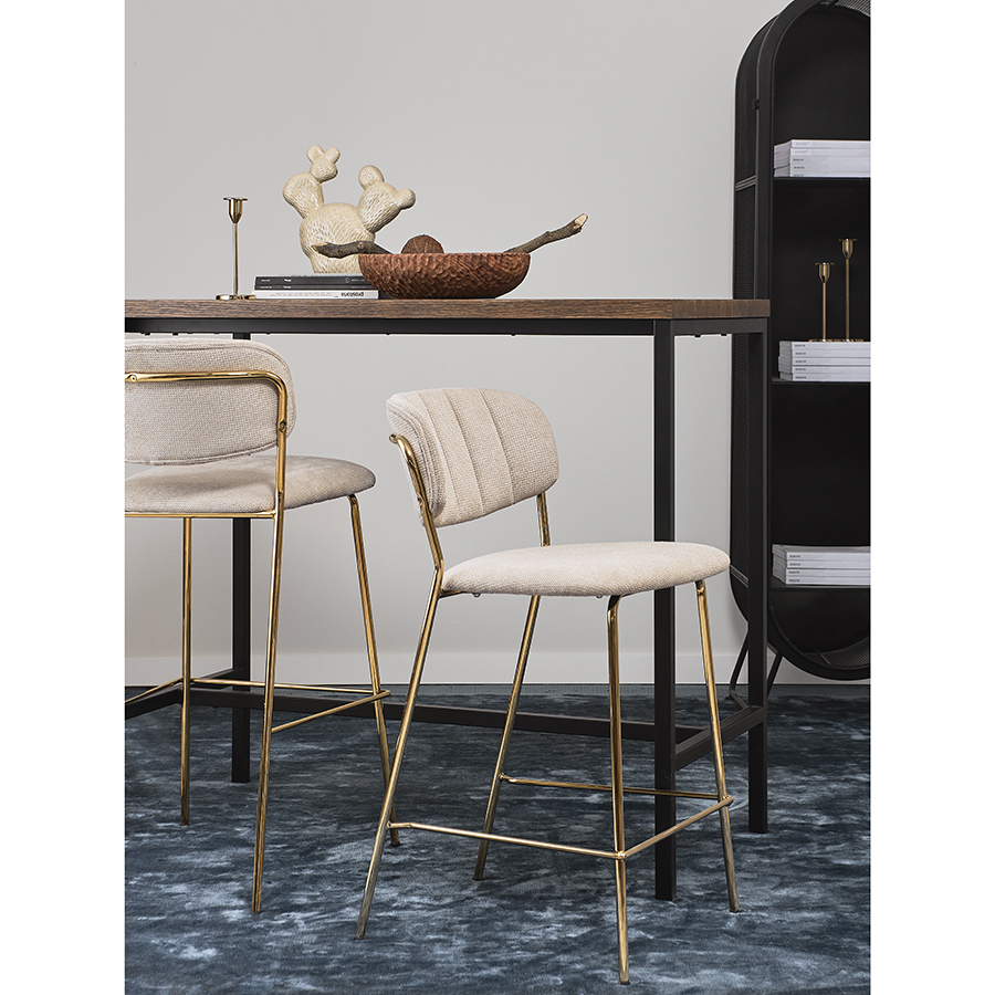 "Стул барный Eirill с обивкой из фактурного шенилла смотрится стильно и презентабельно. Материал приятный на ощупь, износостойкий и нетребовательный в уходе. Комфорт при сидении достигается за счет широкой, полукруглой спинки, глубокой посадки и высоких подлокотников с мягкими накладками. Плавные формы и декоративная строчка делают дизайн элегантным. Практичность и долговечность мебели обеспечивает прочный и надежный железный каркас. Наличие специальной перекладины позволяет удобно разместить ноги во время отдыха. Такой стул великолепно дополнит барную зону в жилом помещении, кафе или ресторане. Модель органично сочетается с такими интерьерными решениями, как неоклассика, фьюжн, эклектика, поп-арт, гранж и другими.