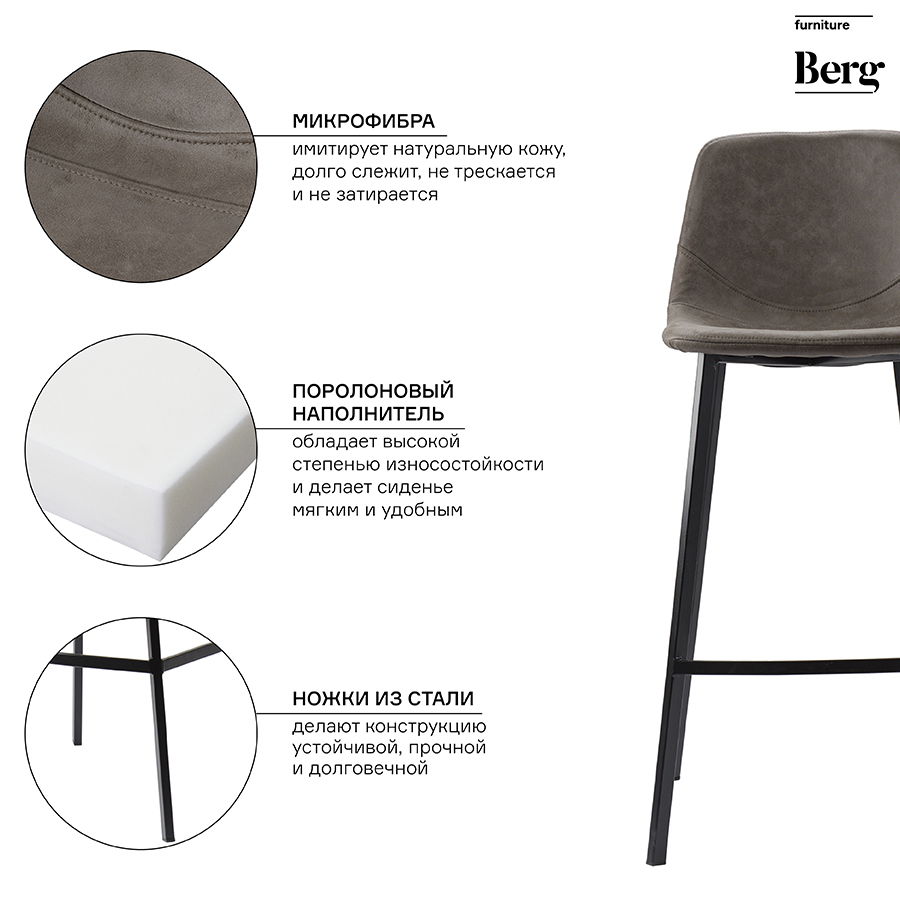 Стул барный Hugh, экокожа, серо-коричневый, Bergenson Bjorn