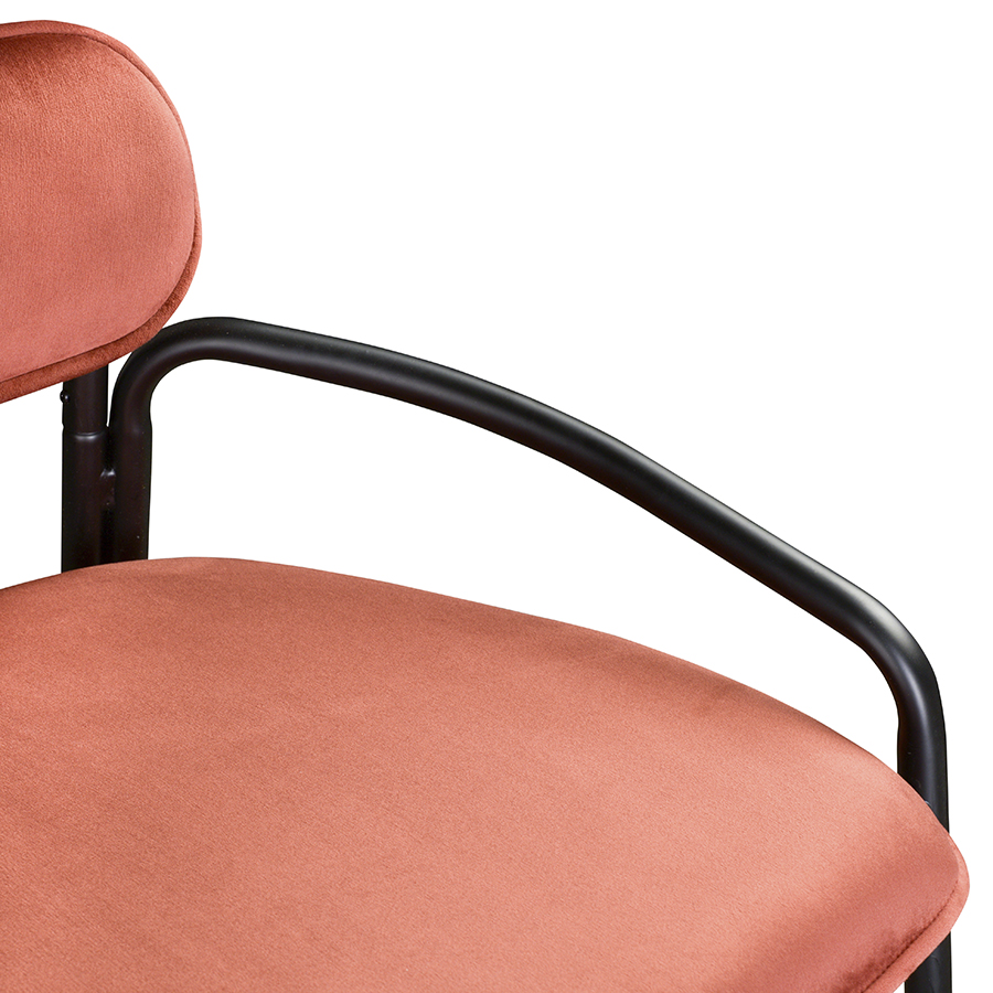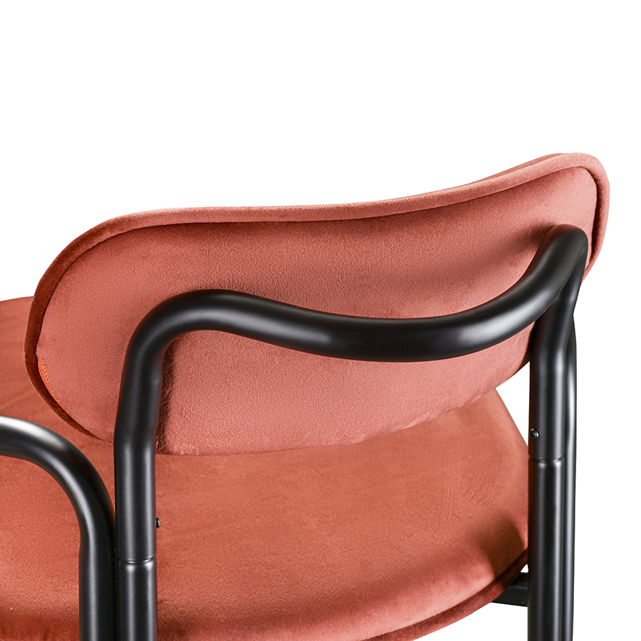 Стальное основание с порошковым покрытием делает конструкцию прочной и надежной, а мягкий велюр с бархатистой текстурой обеспечивает тактильный комфорт. Ткань обивки обладает высокими показателями износостойкости. Используемый в качестве наполнителя пенополиуретан отличается комфортной плотностью и жесткостью.