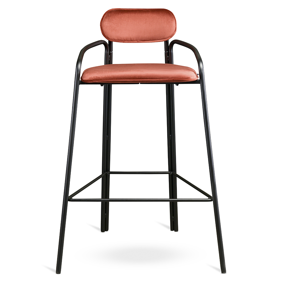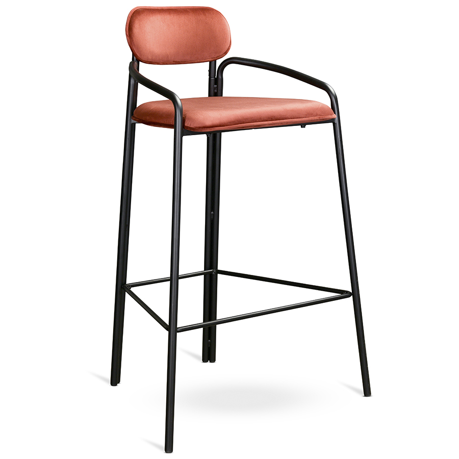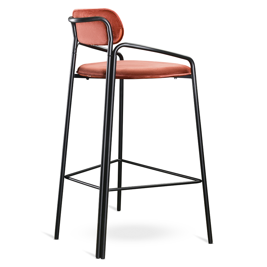 Стул барный Ror, Round, велюр, черный/темно-красный, LATITUDE