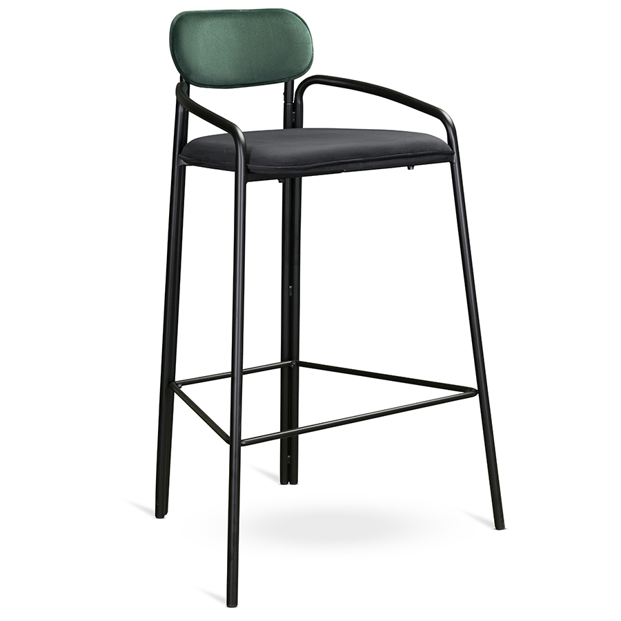 Стул барный Ror, Round, велюр, черный/темно-зеленый/черный, LATITUDE