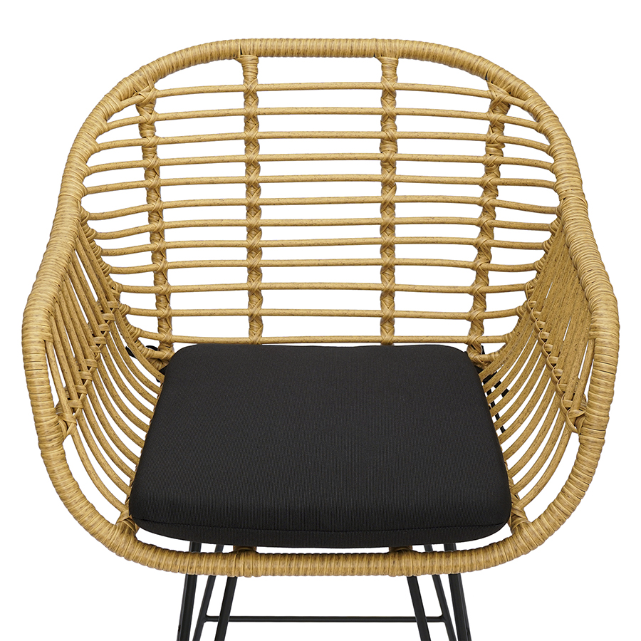 Материал: искусственный ротанг, сталь, полиэстер, пенополиуретан. Размеры: 55х57х105 см. Высота сиденья: 73 см. Высота подушки: 4 см.