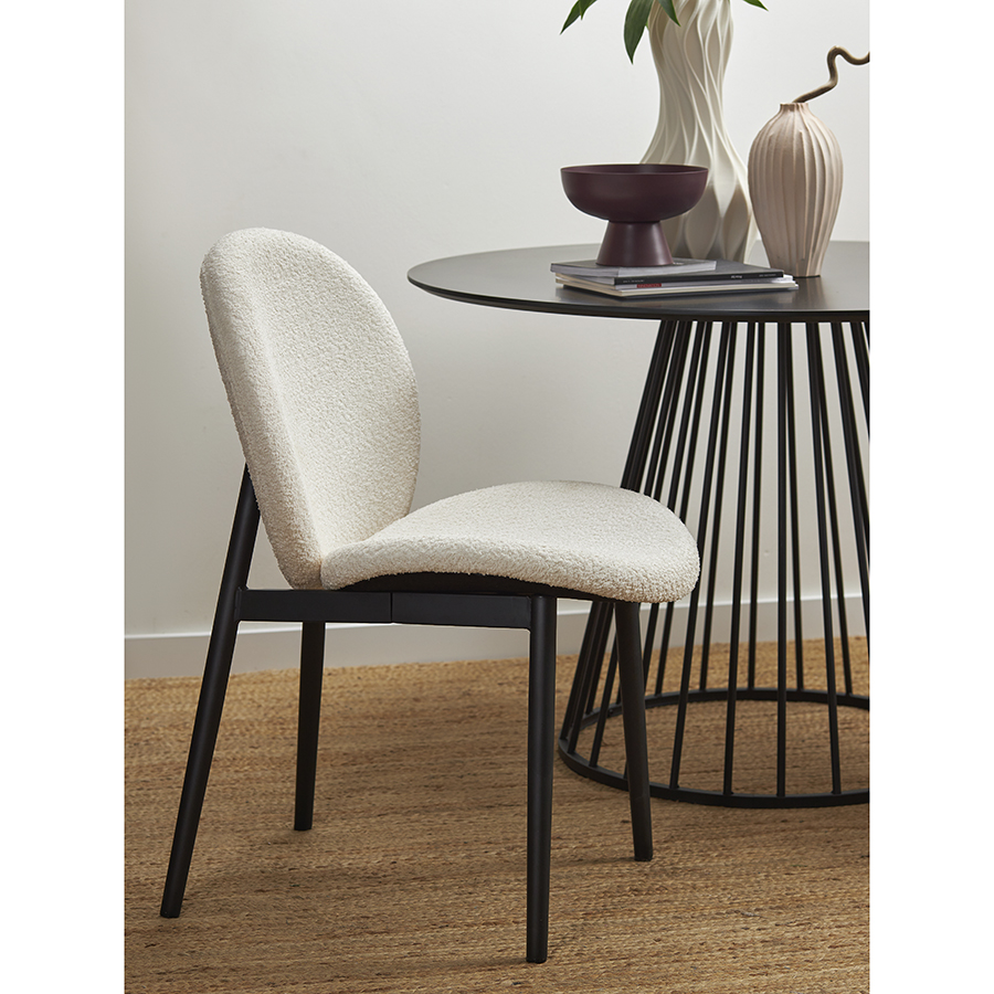 "Мебель с буклированной обивкой делает пространство более уютным и привносит в дизайн интерьера французский шарм. Стул Bente – прекрасный вариант для всех, кто любит быть в тренде и внимательно относится к деталям.