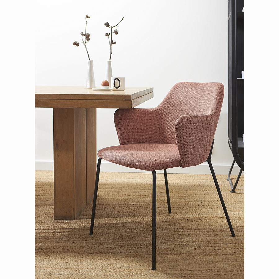 "Стул Dwight приятного кораллового оттенка великолепно дополнит обеденную зону на кухне или в столовой, украсит пространство гостиной, спальни и рабочего кабинета. За счет минималистичного дизайна модель актуальна для большинства интерьерных стилей.