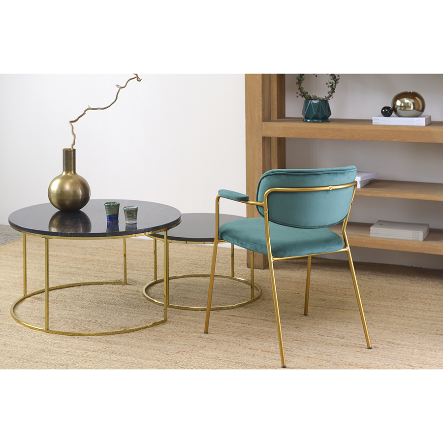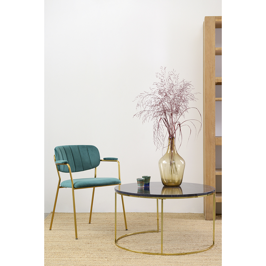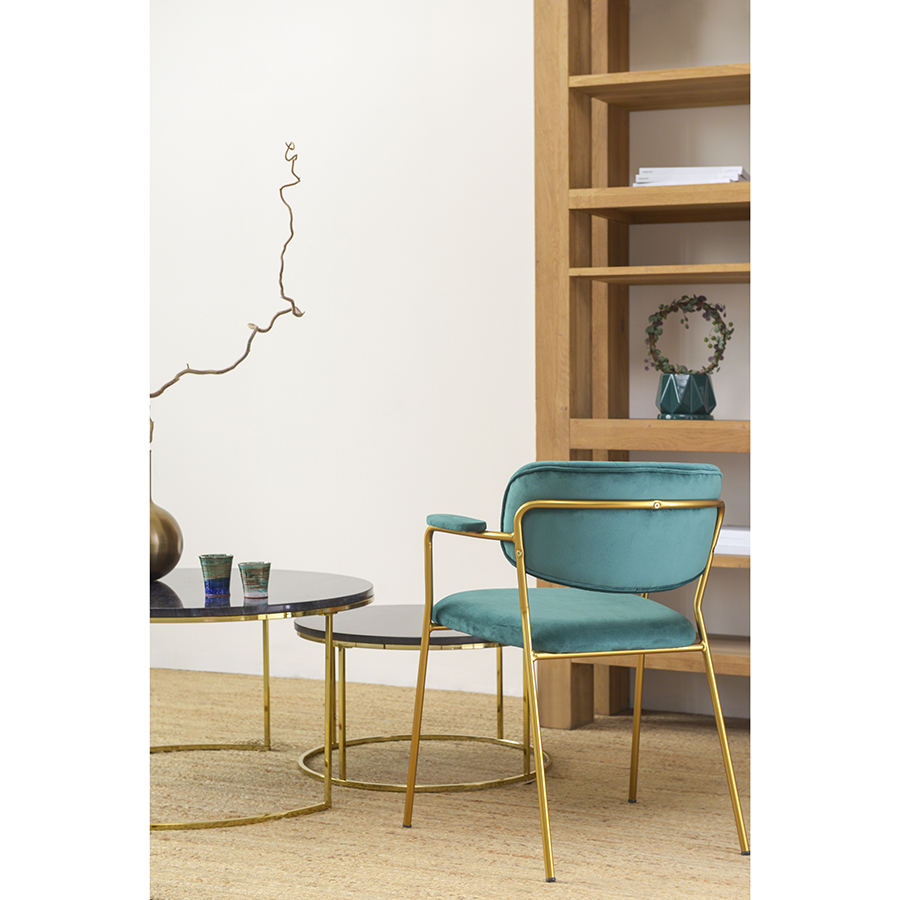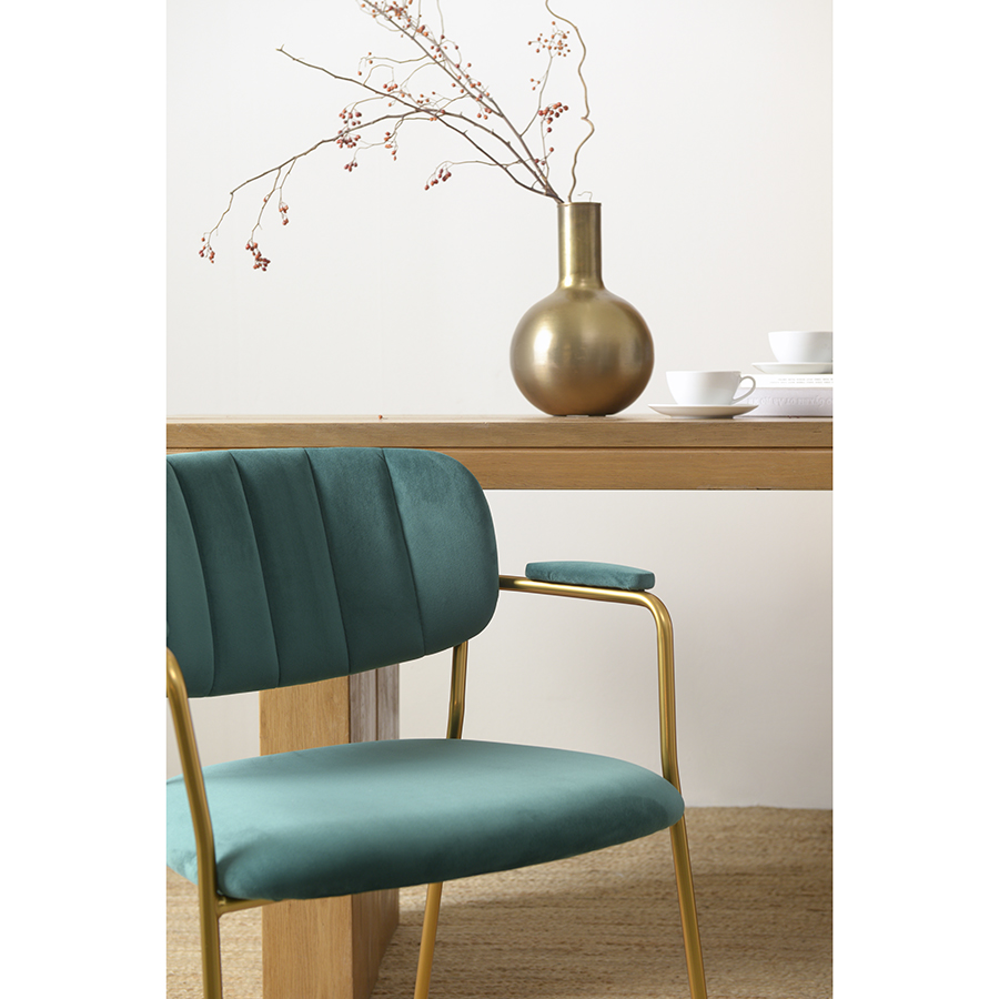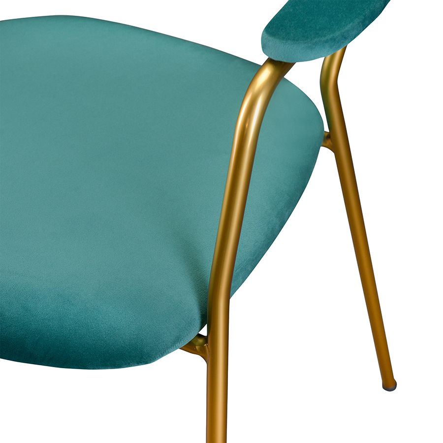 "Стул Eirill с обивкой из мягкого, бархатистого велюра смотрится стильно и благородно. Материал приятный на ощупь, износостойкий и нетребовательный в уходе. Комфорт при сидении достигается за счет широкой, полукруглой спинки, глубокой посадки и высоких подлокотников с мягкими накладками. Плавные формы и декоративная строчка делают дизайн элегантным. Практичность и долговечность мебели обеспечивает прочный и надежный железный каркас. Модель органично вписывается в интерьер, оформленный в скандинавском стиле, эклектика, фьюжн, неоклассика и др.